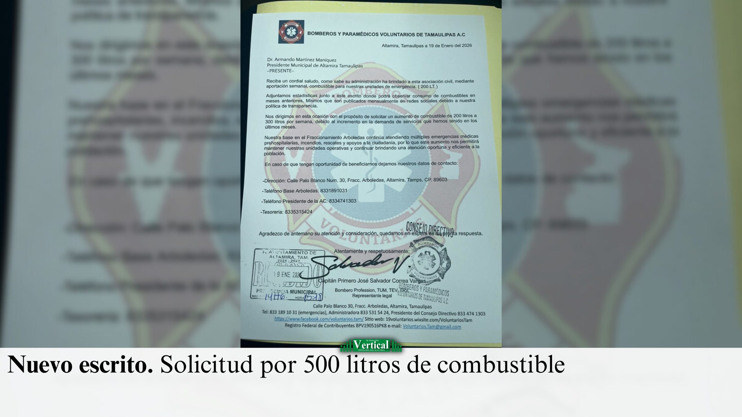 El repudio de los altamirenses obligó a Armando Martínez “Alcalde Culiacán” a donar combustible a Bomberos Voluntarios de Tamaulipas A.C, base Arboledas y como si fuera a apoyar con dinero de su bolsa, el “Alcalde Culiacán” autorizó 200 litros de combustible a la semana, mismos que en las emergencias se los gasta la ambulancia en un día.