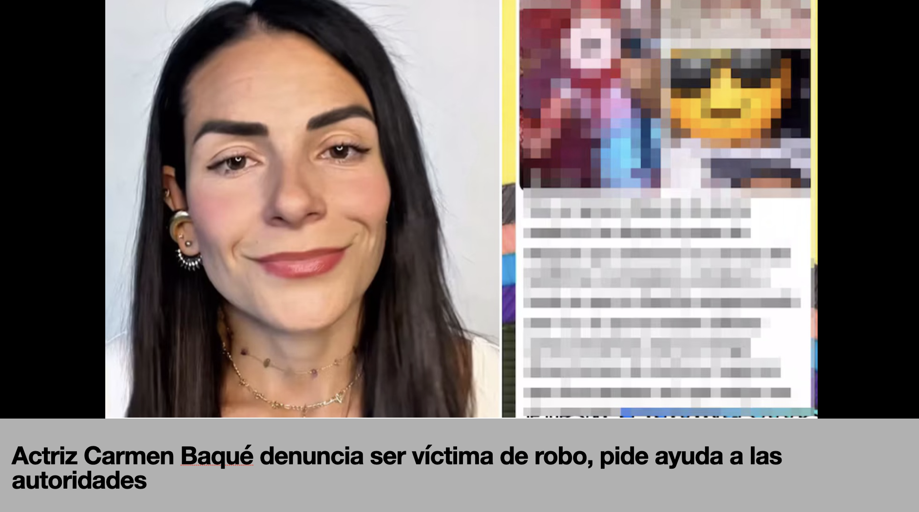 La inseguridad en las calles de Ciudad de México es una realidad, esta vez afectando a la actriz e influencer Carmen Baqué, conocida por su participación en la serie de televisión La Rosa de Guadalupe y el reality La Isla, quien denunció haber sido víctima de un robo mientras realizaba una carrera deportiva junto a su pareja, el coach Miguel Pontón.