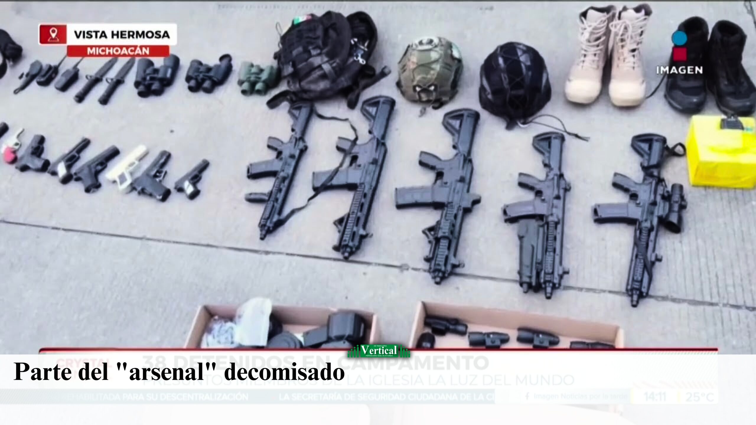 Detuvieron los elementos de la Policía Municipal, Guardia Civil, Guardia Nacional y Ejército a 38 integrantes de la organización religiosa “La Luz del Mundo”, que portaban uniformes, equipo táctico y réplicas de armas de fuego en Vista Hermoso, Michoacán.