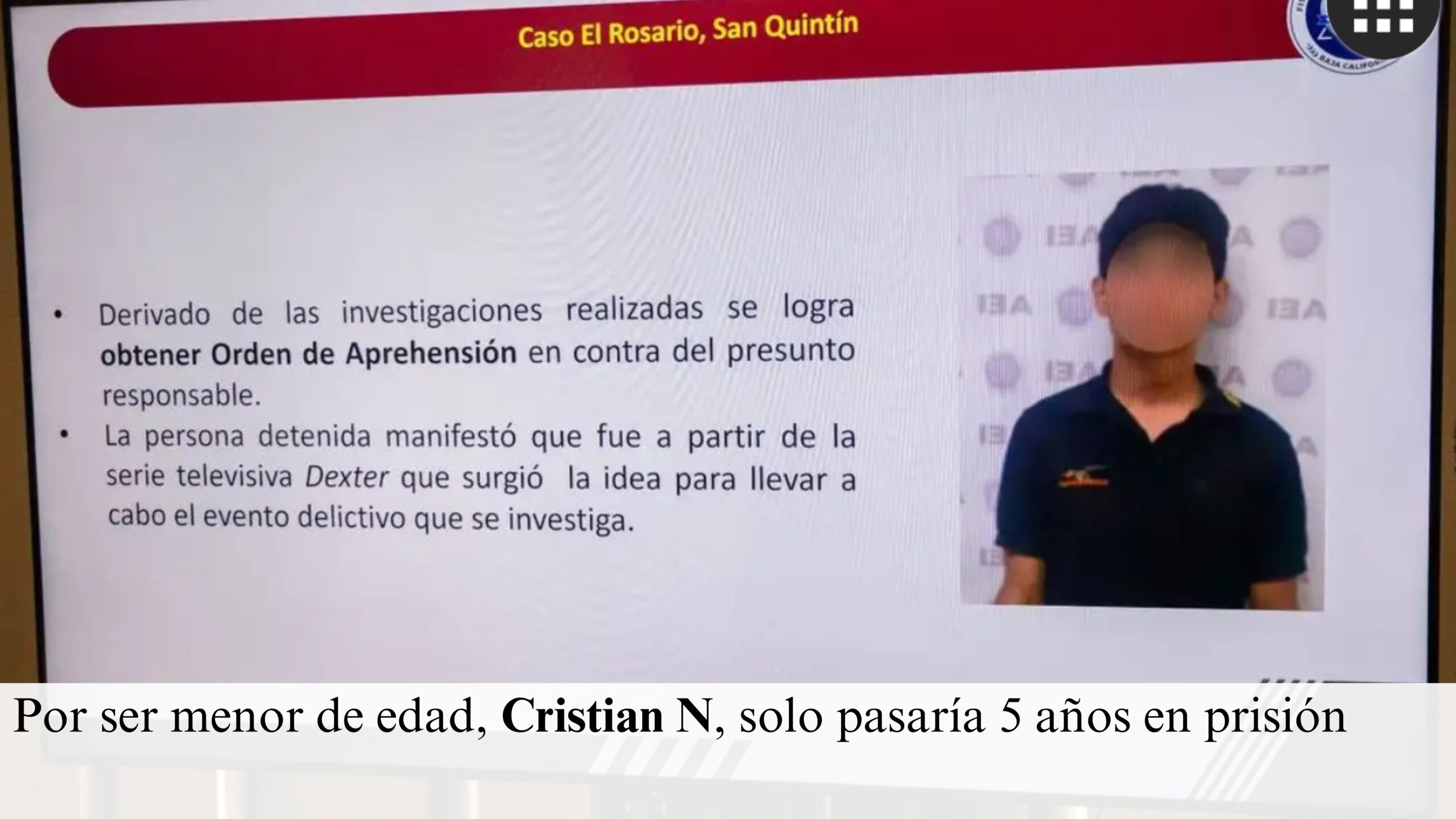 Según declaraciones de la fiscal, el imputado confesó que planificó el crimen motivado por escenas extraídas de la serie de televisión Dexter, la cual presenta un protagonista forense que también actúa como asesino serial.