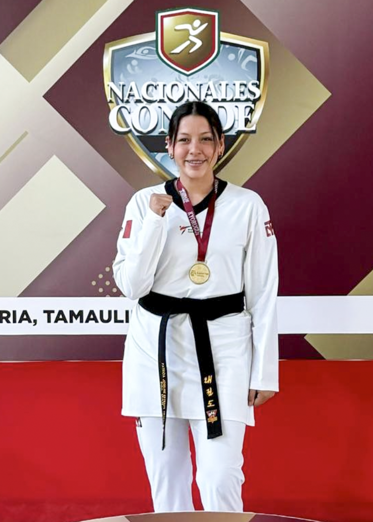 Con la meta de representar a nuestro país en torneos internacionales, la estudiante de la Universidad Autónoma de Tamaulipas (UAT), Andrea Leticia Estrada Tirado, trabaja arduamente en el deporte que le apasiona y que practica desde los seis años: el taekwondo.