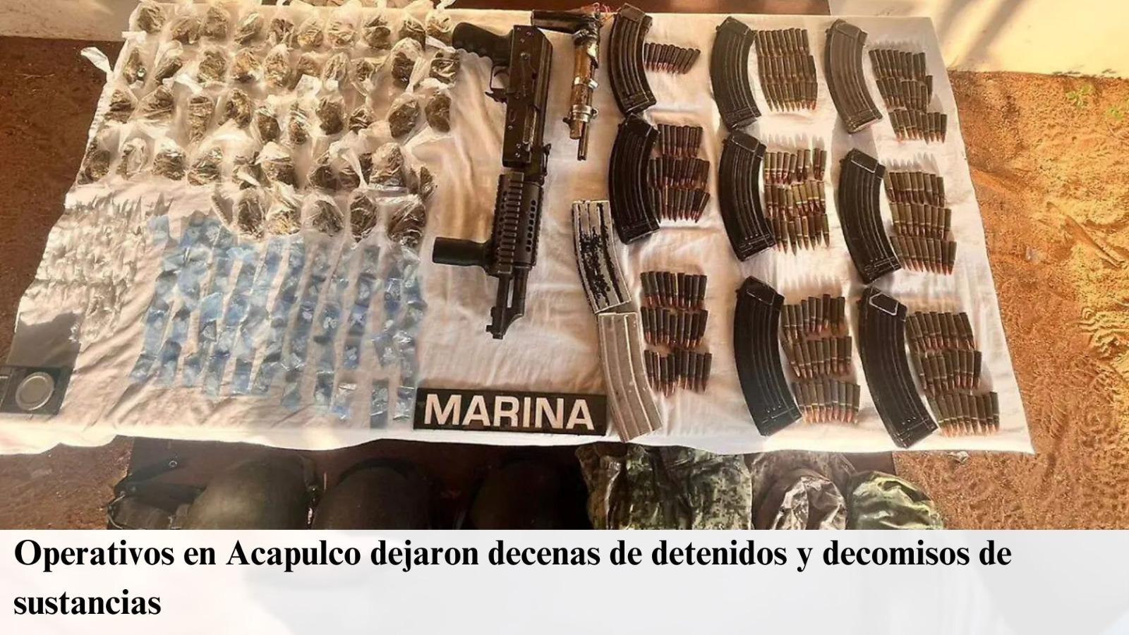 En el mismo contexto la Secretaría de Marina informó que durante el mes de marzo en Acapulco se llevaron a cabo acciones dentro de la estrategia de seguridad que permitieron la detención de 81 personas vinculadas con delitos contra la salud y otros ilícitos, en estos operativos se aseguraron diversas dosis de sustancias similares al cristal mariguana cocaína y piedra además de armas cartuchos vehículos motocicletas cámaras irregulares equipo táctico y dinero en efectivo.
