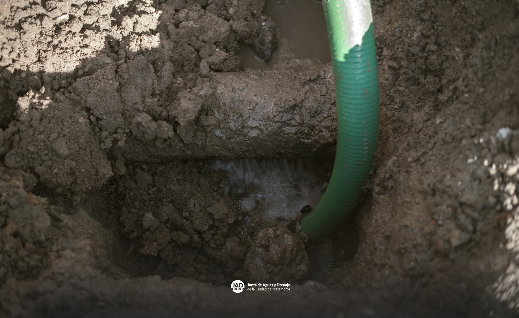 Por instrucciones del Presidente Municipal Beto Granados, personal de la Junta de Aguas y Drenaje de Matamoros realizó la reparación de una fuga de agua potable en la calle Bustamante, en la zona Centro de la ciudad.