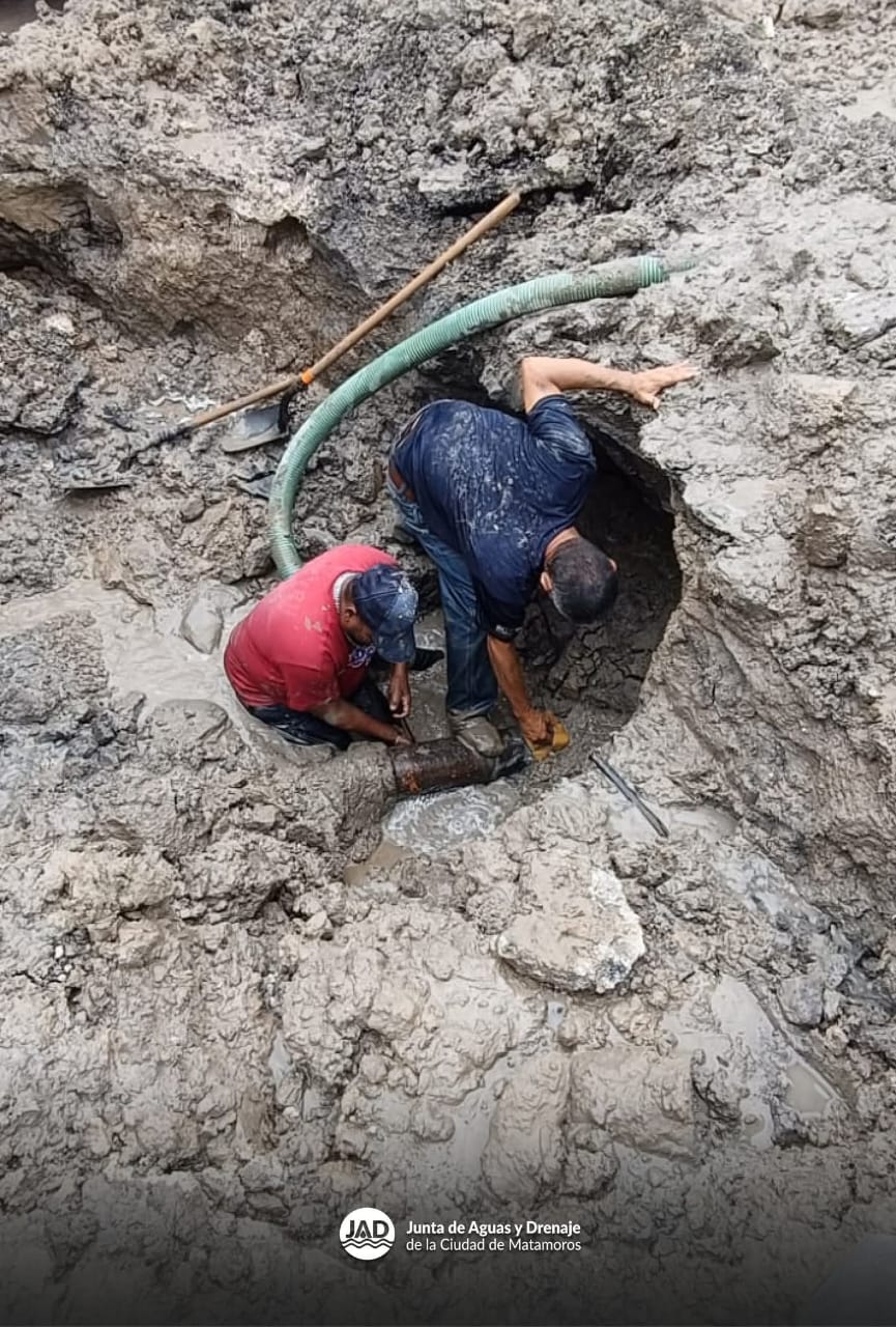 Como parte de las acciones permanentes que la Junta de Aguas y Drenajes de Matamoros lleva a cabo para garantizar el adecuado funcionamiento de la red de agua potable, continúan los trabajos de detección y reparación de fugas en distintos puntos de la ciudad. Estas labores forman parte de una estrategia integral que busca mejorar la eficiencia del sistema hidráulico, reducir el desperdicio del recurso y asegurar un servicio continuo y de calidad para la ciudadanía.