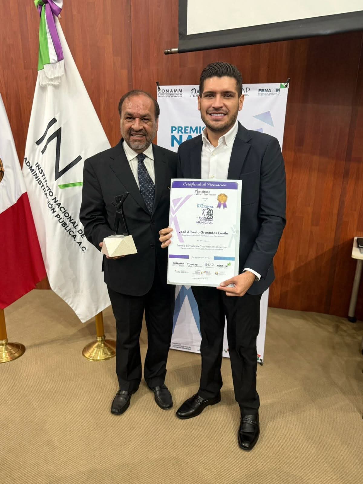 El reconocimiento fue entregado por la Conferencia Nacional de Municipios de México, en la ceremonia desarrollada en la sede del Instituto Nacional de Administración Pública (INAP), en la Ciudad de México, donde el alcalde Granados recibió formalmente el galardón en representación de Matamoros, consolidando al municipio como referente nacional en gestión pública inteligente.