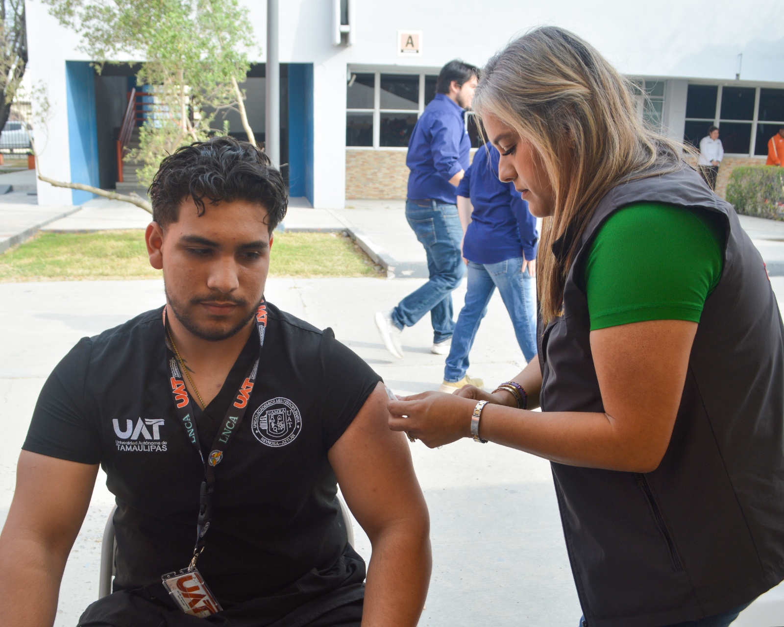La Universidad Autónoma de Tamaulipas (UAT), en coordinación con la Secretaría de Salud, lleva a cabo exitosas jornadas de vacunación en las instalaciones universitarias de Reynosa, ampliando el acceso a servicios preventivos para estudiantes, docentes, trabajadores y sus familias.