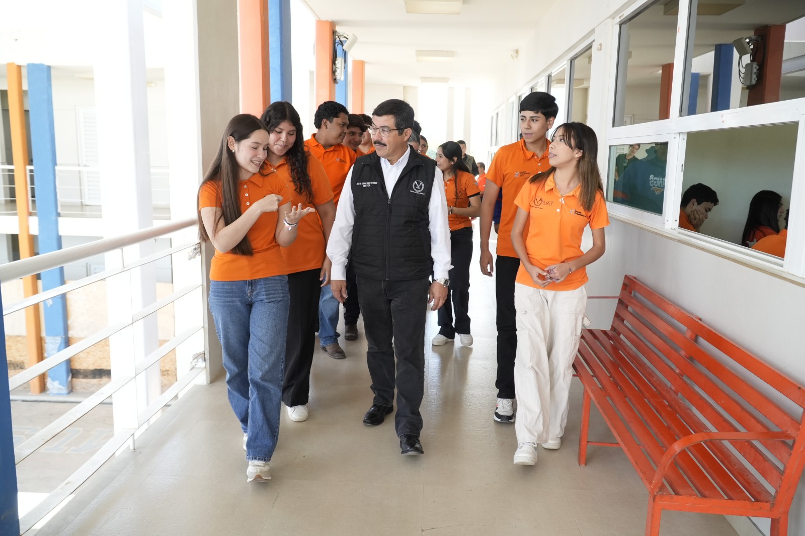 El rector destacó la importancia de mantener un contacto directo con la comunidad universitaria escuchando de primera mano sus inquietudes y acompañando sus avances, como parte de una administración cercana y comprometida con todos los programas educativos de la UAT.