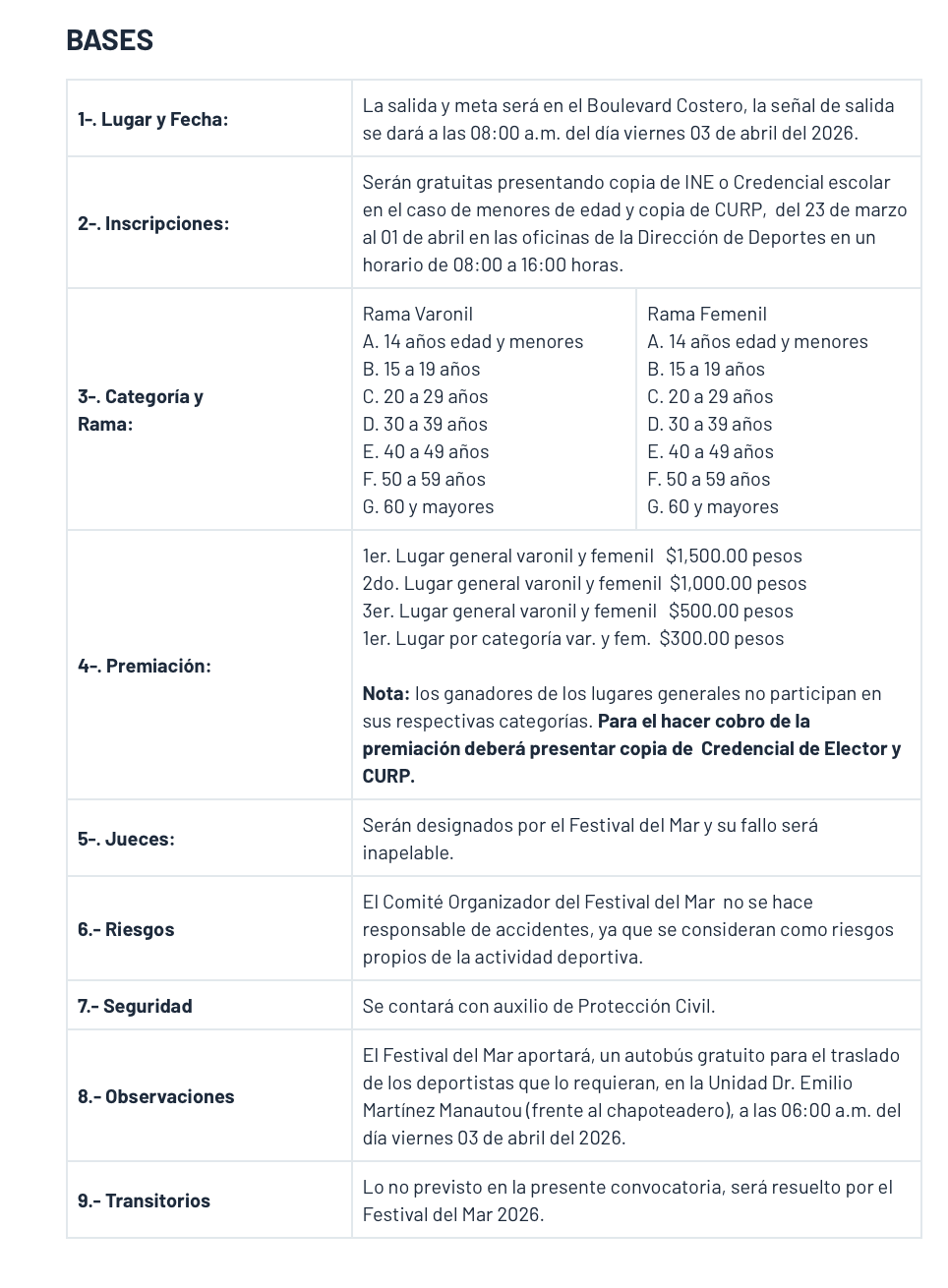 El R. Ayuntamiento de Matamoros a través de la Secretaría de Educación, Cultura y Deporte en coordinación de la Dirección del Deportes y el Comité Organizador del Festival del Mar 2026.