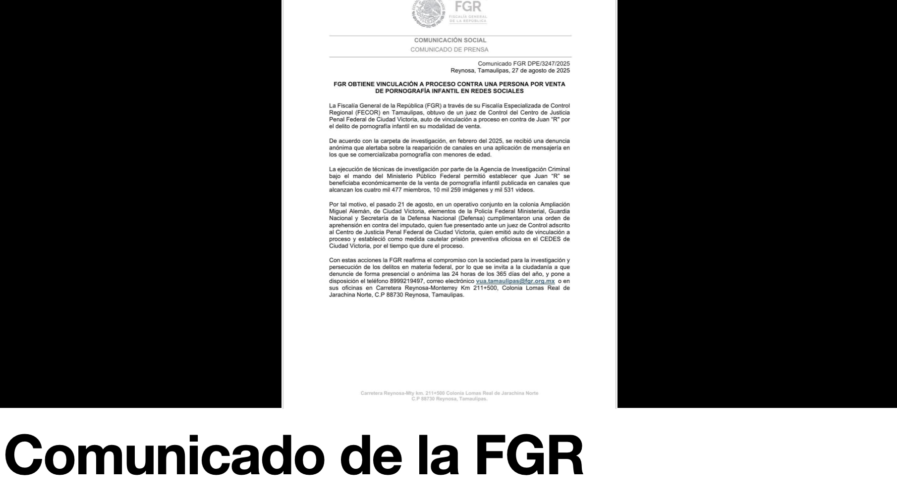 Posteriormente, el detenido fue trasladado ante un juez de Control del Centro de Justicia Penal Federal de Ciudad Victoria, quien determinó su vinculación a proceso y dictó como medida cautelar la prisión preventiva oficiosa en el Centro de Ejecución de Sanciones de Tamaulipas, el acusado permanecerá tras las rejas durante todo el tiempo que dure el juicio, mientras la Fiscalía amplía la investigación sobre esta red que exhibe la crudeza del crimen digital en México.