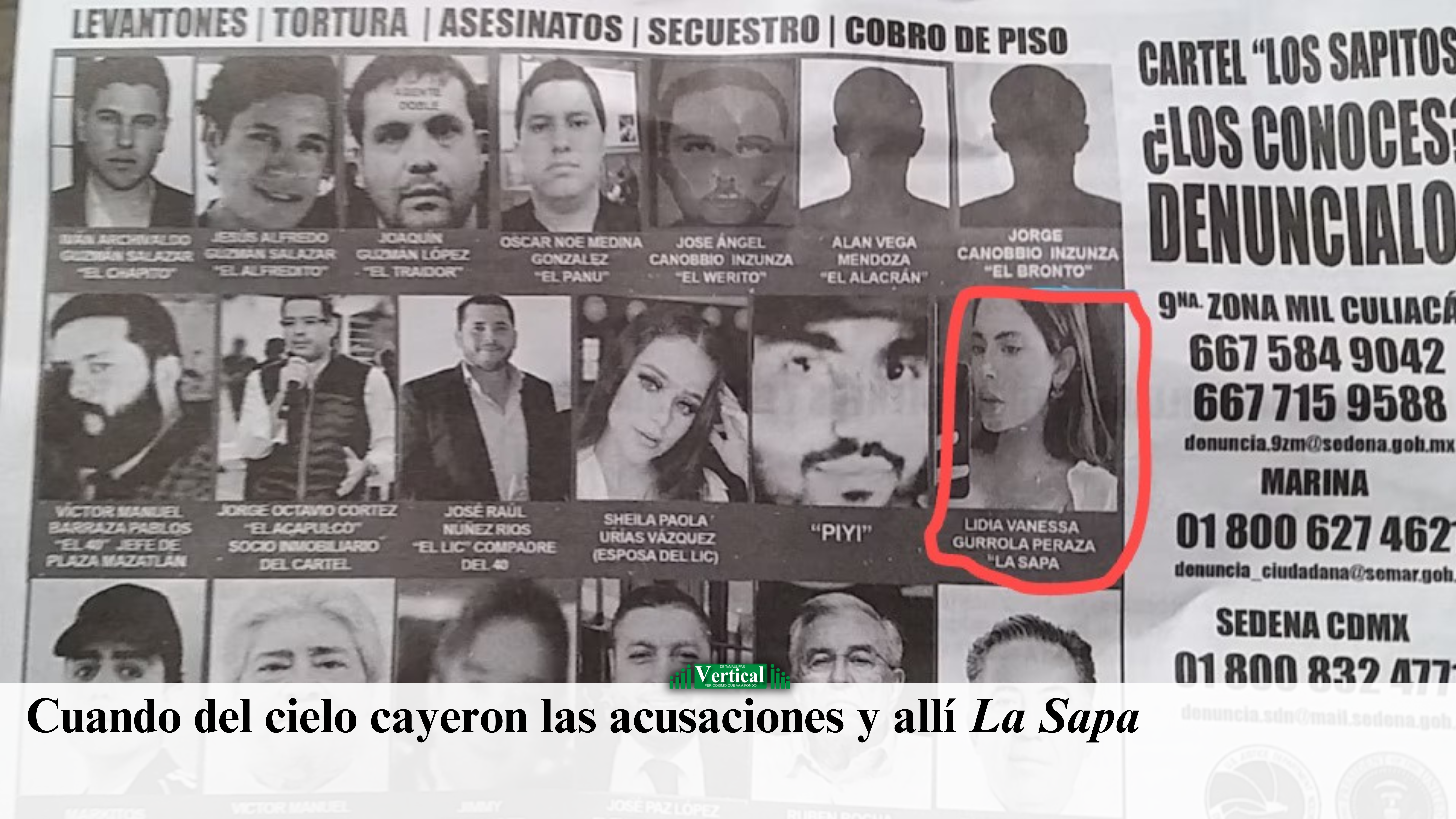 Desde una avioneta, lanzaron unos volantes, durante las primeras horas del 27 de septiembre de 2024 en los municipios de Culiacán, Los Mochis y Mazatlán del estado de Sinaloa, en el que la modelo Vanessa Gurrola, apareció junto a 18 personas más, entre las que se encuentran el gobernador Rubén Rocha Moya, José Paz López Elenes, alcalde Badiraguato y otros influencers como Markitos Toys, todos de la banda de Los Sapos.