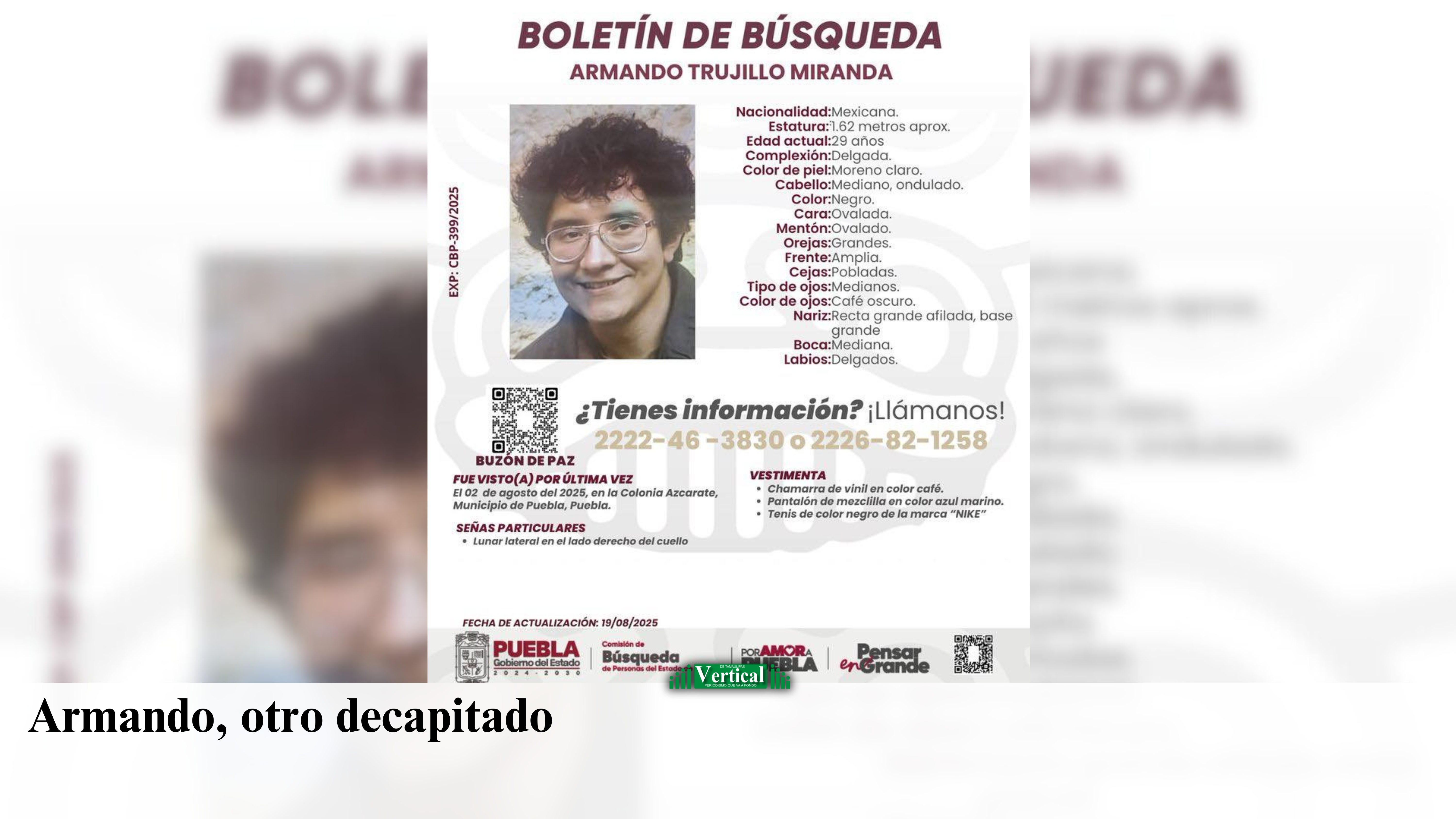 Después, se identificó al tercero de los poblanos decapitados y abandonados en Tlaxcala como Armando, que desapareció el dos de agosto en la colonia Azcárate.