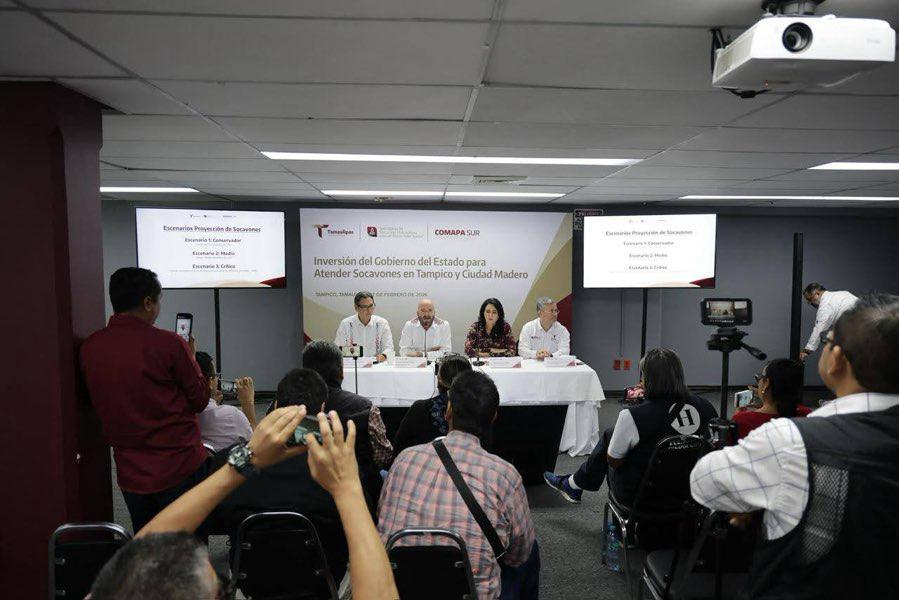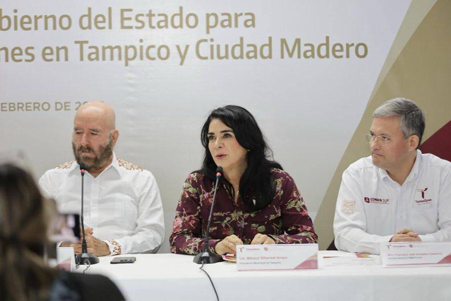 En rueda de prensa, el secretario de Recursos Hidráulicos, Raúl Quiroga Álvarez, acompañado por la alcaldesa de Tampico, Mónica Villarreal; el presidente municipal de Ciudad Madero, Erasmo González Robledo; y el gerente de Comapa Sur, Francisco González Casanova, explicó que la infraestructura hidrosanitaria de la zona presenta una antigüedad aproximada de 60 años, derivada de un rezago histórico en materia de conservación y rehabilitación.
