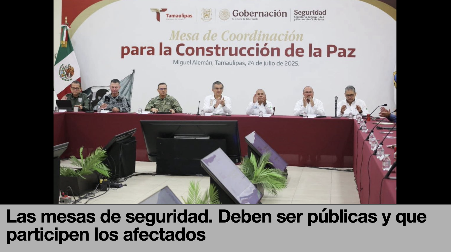 Queda claro que la autoridad debe hacer su trabajo con libertad, pero también los reporteros, deben de hacer su trabajo con libertad, y la libertad empieza con el conocimiento de las personas de los medios que la promueven y la defienden donde la autoridad y los altos mandos de las mesas de seguridad, tanto nacional, como en los estados, tienen la obligación de hacer públicos, esos encuentros para que todas las partes de la sociedad a ojo de todo ciudadano, y al cielo abierto en la plaza pública, se sepa qué está pasando en las comunidades, y cómo los habitantes podemos ayudar para solucionar el problema. Porque en las mesas de seguridad están representados todos los mandos de gobierno, menos los afectados, los extorsionados y los que viven en peligro en sus barrios y colonias. Estas mesas son de simulación.
