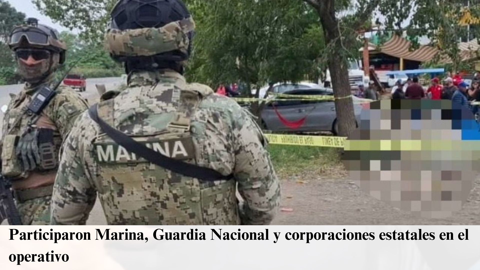 Al sitio acudieron corporaciones de distintos niveles incluyendo Policía Estatal, Ejército Mexicano, Marina, Guardia Nacional y personal de la Fiscalía General del Estado quienes acordonaron la zona para realizar las diligencias correspondientes, posteriormente peritos y personal del Servicio Médico Forense llevaron a cabo el levantamiento de los cuerpos mientras continúan las investigaciones para esclarecer los hechos y reforzar la vigilancia en la zona.