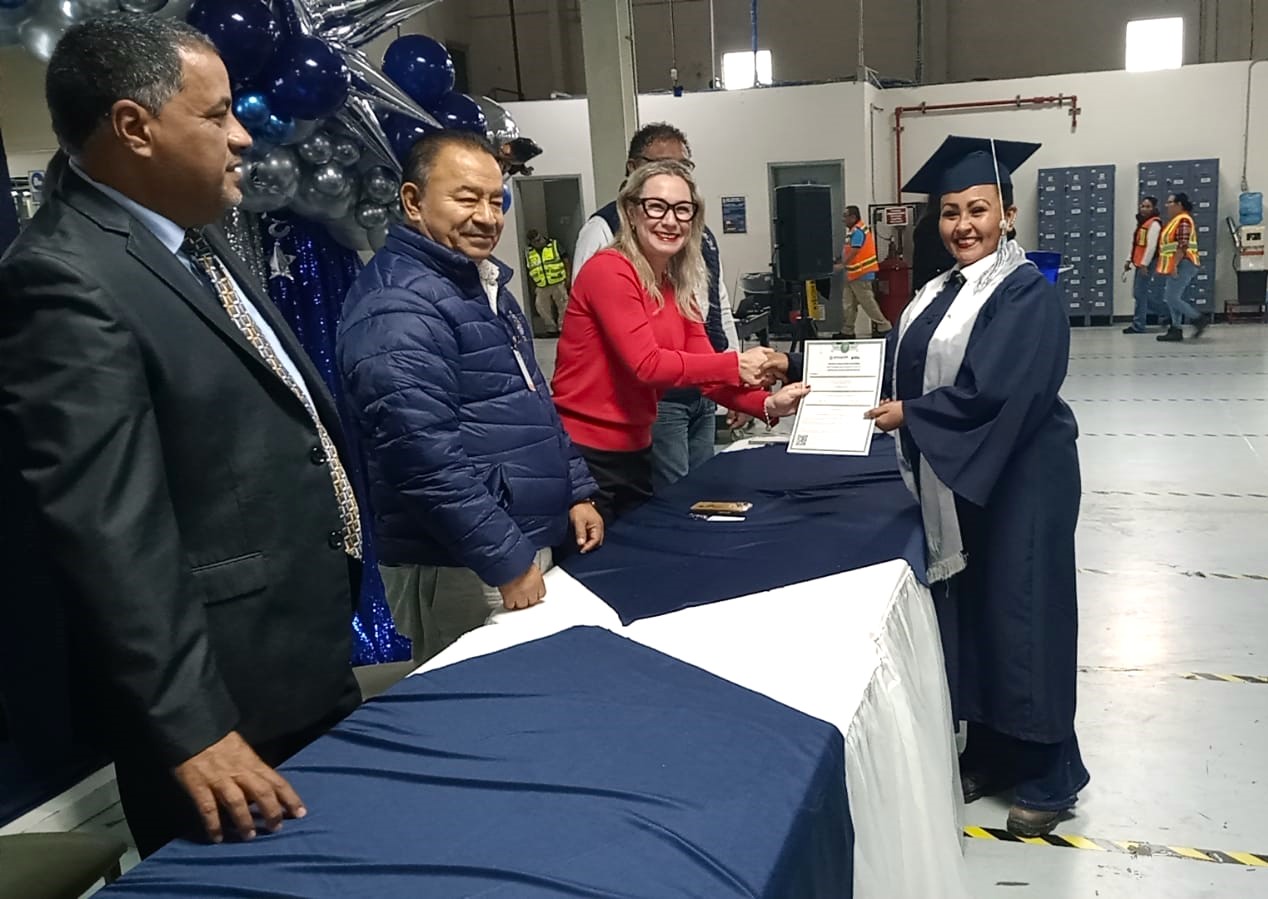 El Instituto Tamaulipeco de Educación para Adultos (ITEA), entregó certificados a más de una veintena de trabajadores de la empresa Sensormatic Manufacturing by Johnson Control de México, ubicada en el municipio de Matamoros, quienes culminaron su educación secundaria.