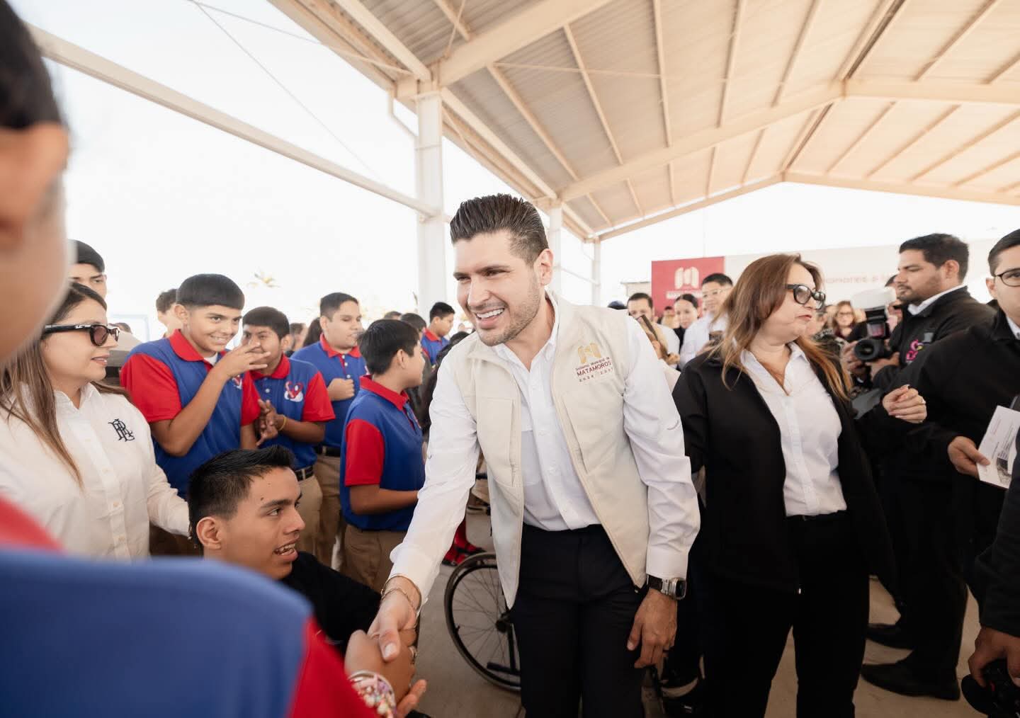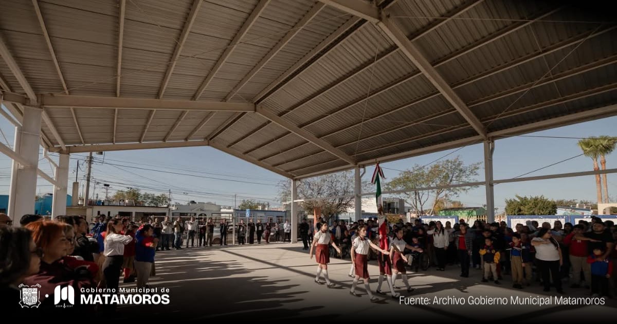 Hoy lunes, inicio de semana, el Presidente Municipal de Matamoros, Beto Granados, encabezó la Ceremonia de Honores a la Bandera en el Centro de Atención Múltiple (CAM) Laboral “Alfonso Sánchez Sánchez”, ubicado en la colonia Los Encinos, donde además se llevó a cabo la inauguración oficial de una nueva techumbre y explanada que fortalecerán las actividades educativas, cívicas y recreativas del plantel.