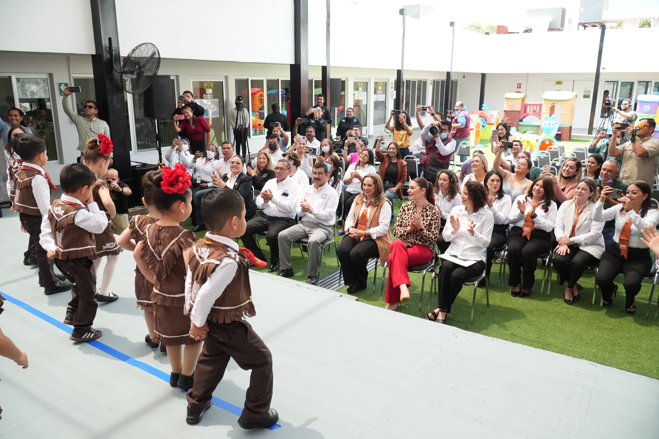 Las autoridades hicieron un recorrido por las diferentes áreas diseñadas para el desarrollo infantil, y como parte del evento, los pequeños de maternal C-2 presentaron el baile “Perla Tamaulipeca” demostrando la importancia de integrar el arte y la cultura en la formación temprana de los niños.