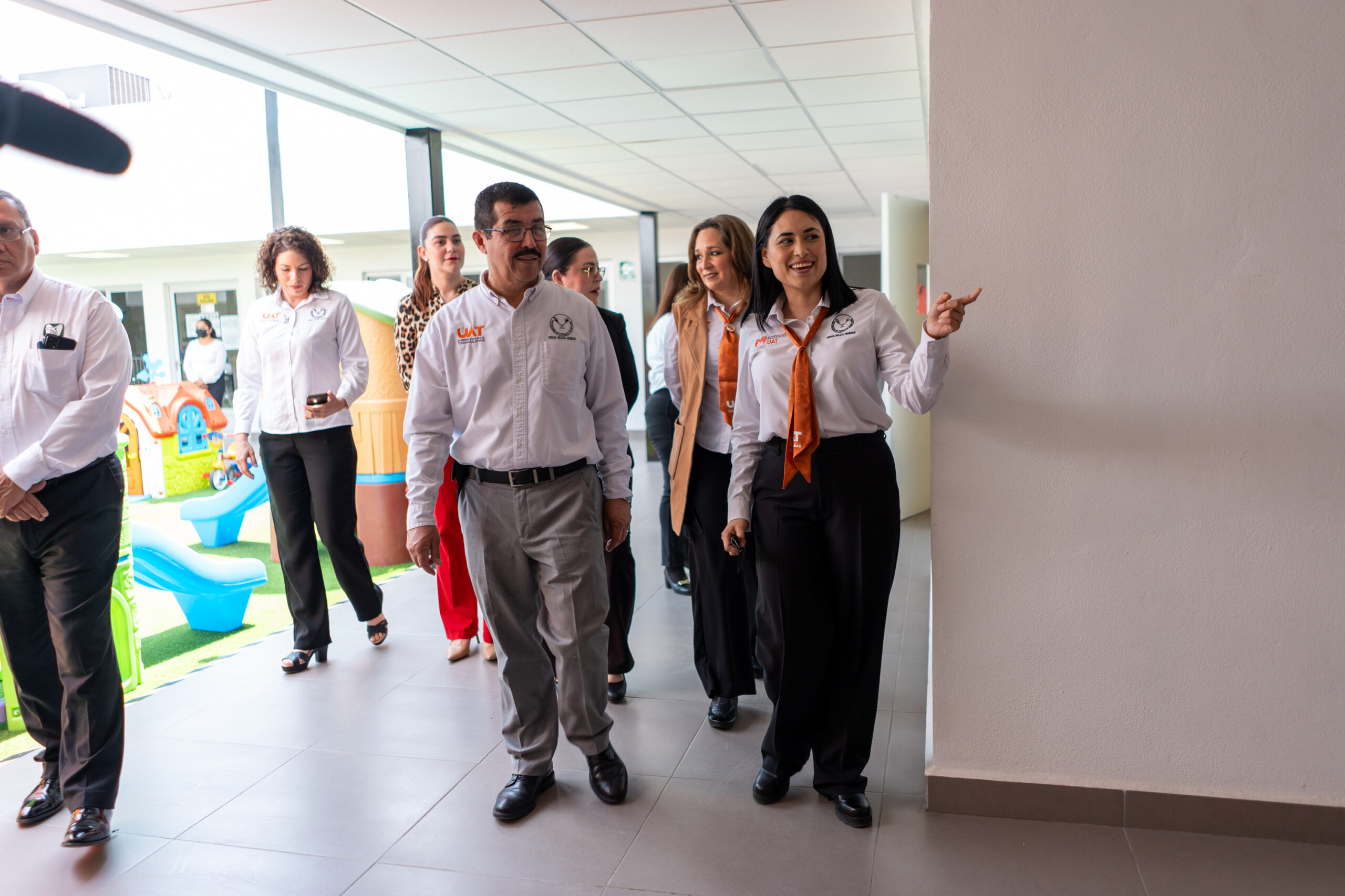 Agradeció el apoyo del IMSS para hacer posible este proyecto que se consolida como un modelo de innovación y responsabilidad social, en el que actualmente se atiende a 183 infantes, fortaleciendo el bienestar de los trabajadores de la UAT.