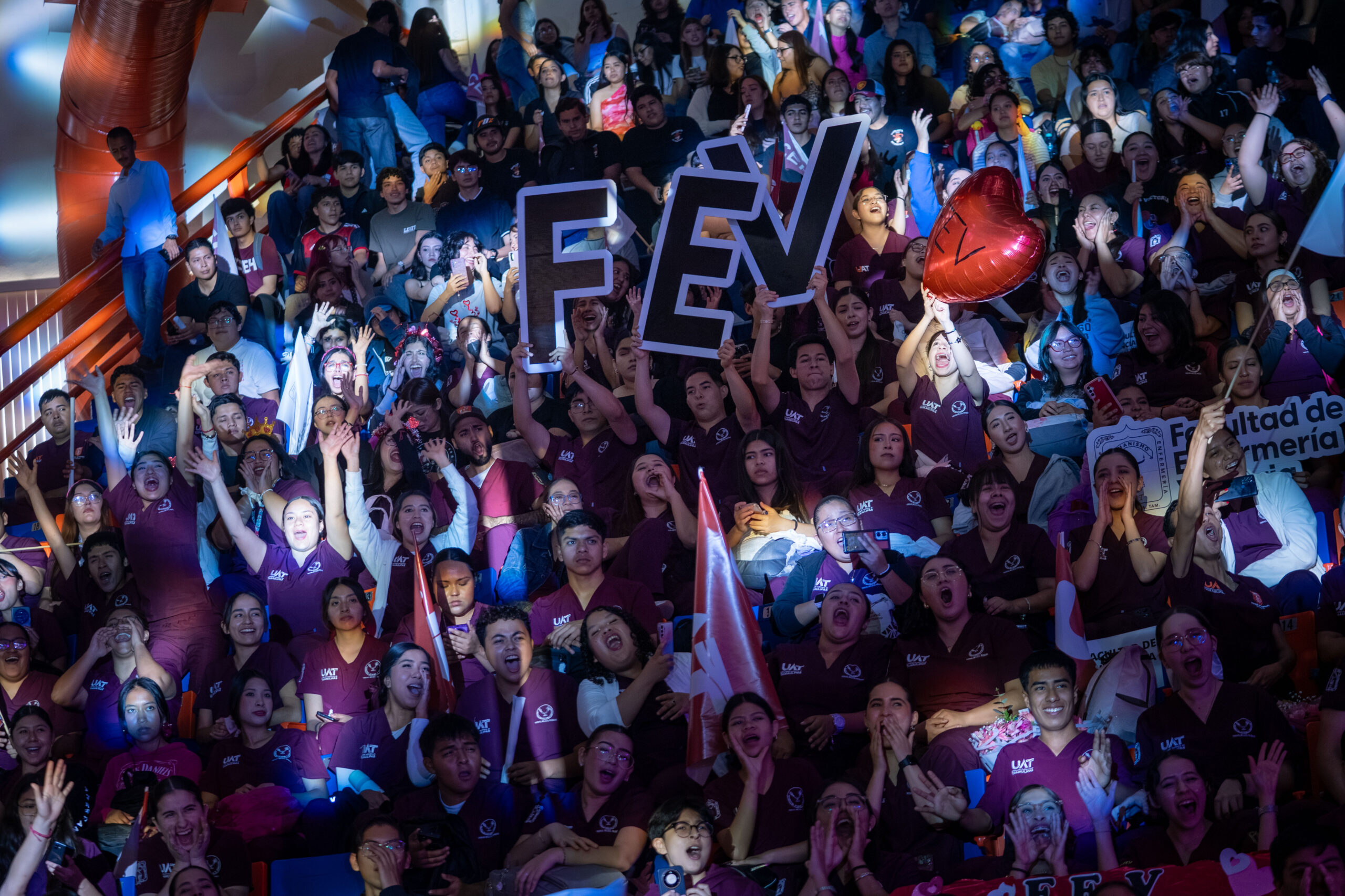 El rector de la Universidad Autónoma de Tamaulipas (UAT), Dámaso Anaya Alvarado, acompañó a la comunidad estudiantil en la serie de conciertos “Broken Heart Club”, realizada en los gimnasios multidisciplinarios de la UAT de Tampico y Victoria, en el marco del Día del Amor y la Amistad.