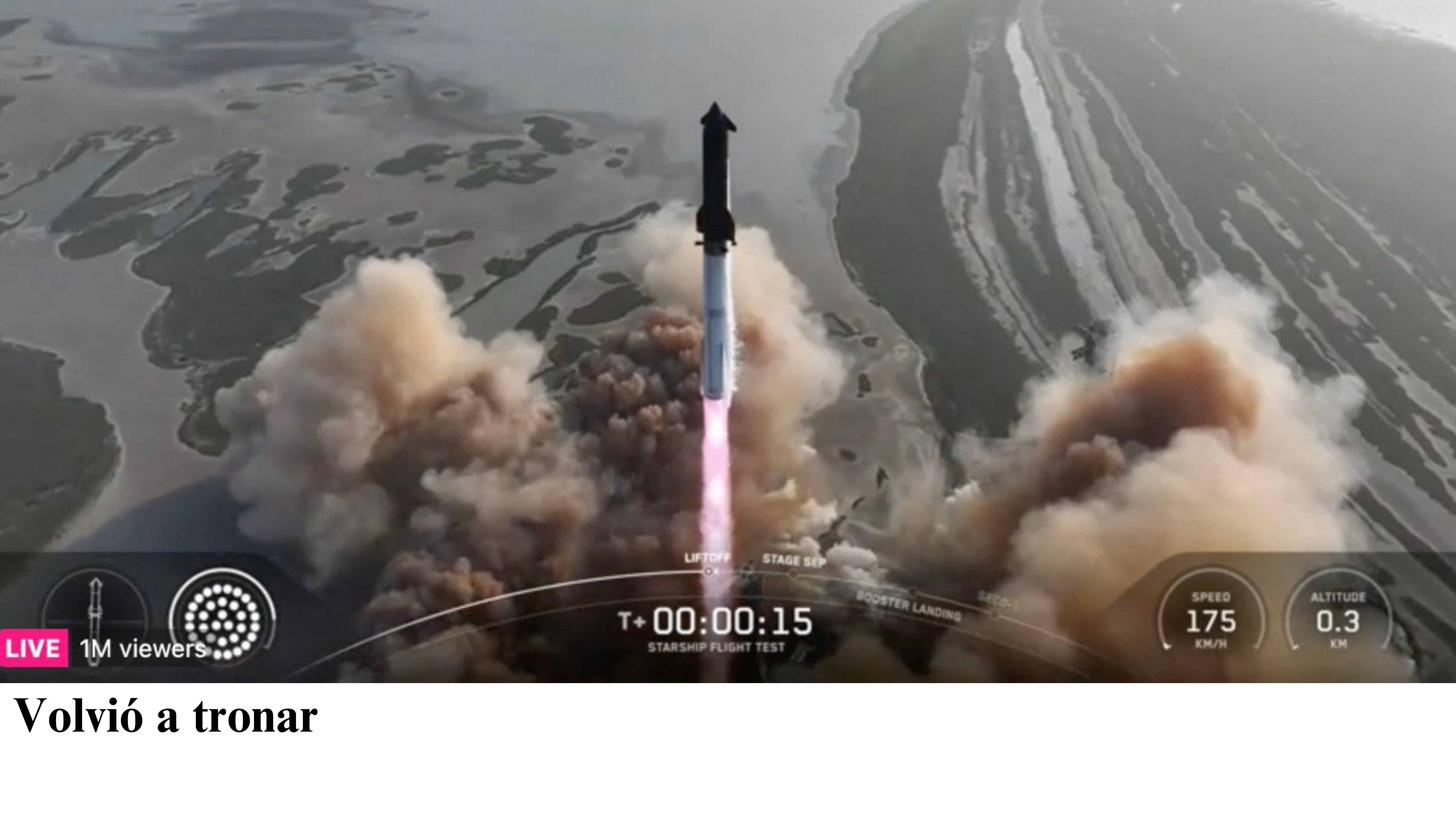 El vehículo de lanzamiento más grande y potente jamás construido, despegó desde las instalaciones Starbase de la compañía, cerca de Brownsville, un pueblo del sur de Texas, que a principios de mes votó para convertirse en la ciudad de Starbase.