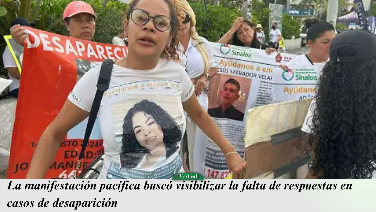 Cerca de 30 personas se sumaron a la manifestación pacífica con la intención de aprovechar la alta afluencia de asistentes para difundir los rostros de los ausentes y pedir apoyo ciudadano para localizarlos.
