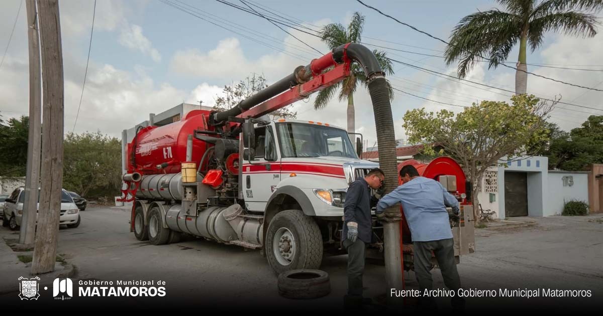 Siguiendo las instrucciones del alcalde de Matamoros, Beto Granados, el camión vactor continúa realizando recorridos por diversas colonias de la ciudad como parte de las acciones preventivas para mantener en óptimas condiciones el sistema de drenaje sanitario.