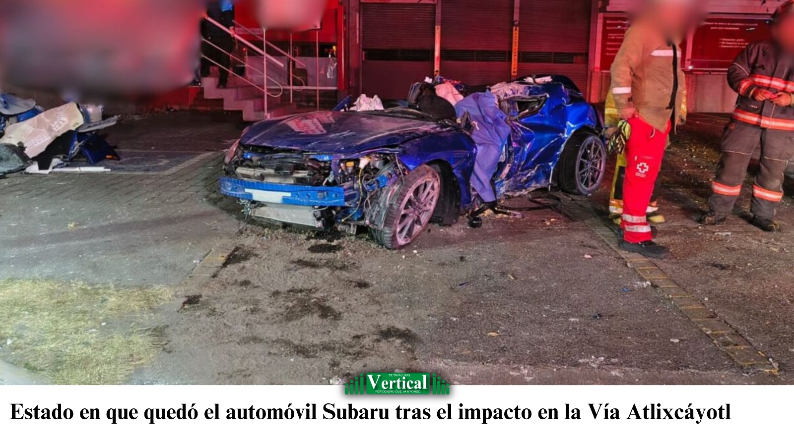 Una fuerte colisión en la madrugada del sábado 22 de noviembre en la Vía Atlixcáyotl, a la altura de Bosques de Angelópolis en Puebla, dejó un saldo trágico. Un vehículo Subaru de color azul perdió el control, chocó contra el guardavía, quedó destrozado y derribó un poste de concreto, que colapsó sobre la calzada. A pesar de lo aparatoso del accidente, una sola persona logró sobrevivir mientras dos jóvenes perdieron la vida.