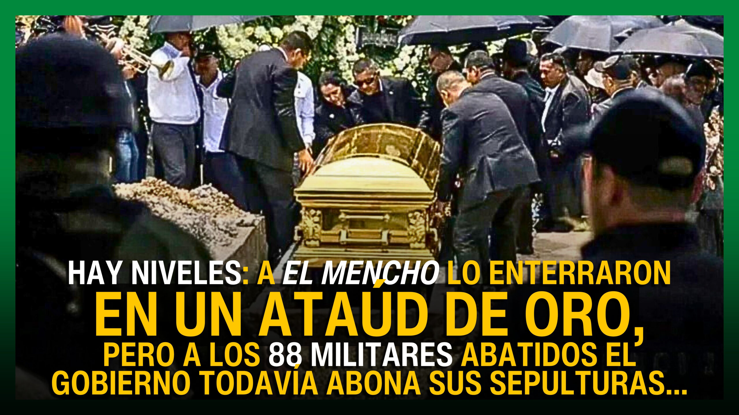 El Mencho para todos, El Señor de los Gallos para sus amigos, originario de Naranjo de Chila en Aguililla, Michoacán, punto estratégico para los cárteles de la droga, fue victimado el 22 de febrero, pero sus restos dentro de un ataúd de oro, descansan en el panteón Recinto de la Paz en la colonia San Juan de Ocotolán, en Zapopan, Jalisco.