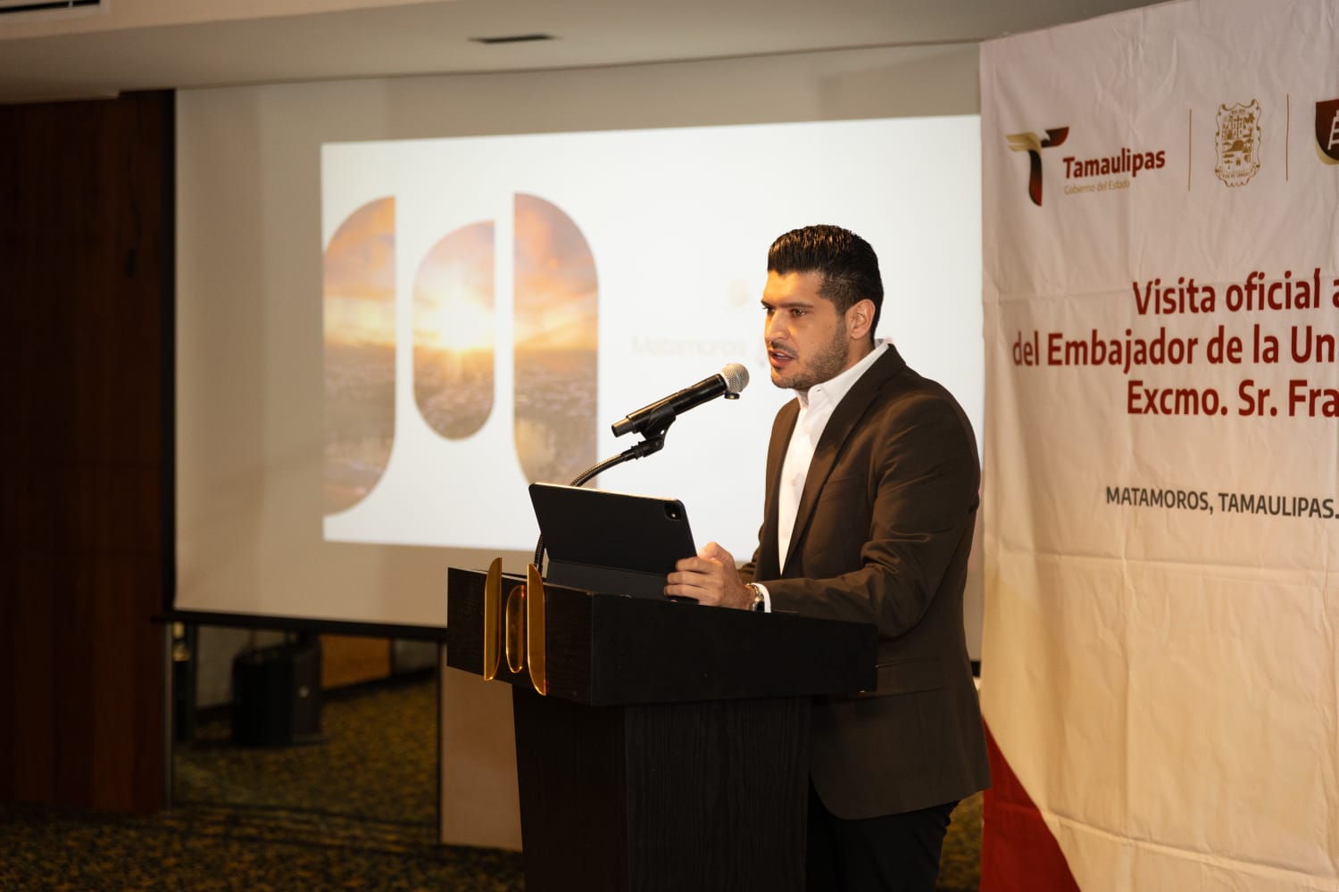 El alcalde de Matamoros, Beto Granados, encabezó junto con la secretaria de Economía de Tamaulipas, Ninfa Cantú Deandar la reunión con el Excelentísimo. Sr. Francisco André, Embajador de la Unión Europea en México, en el marco de su visita oficial al estado.
