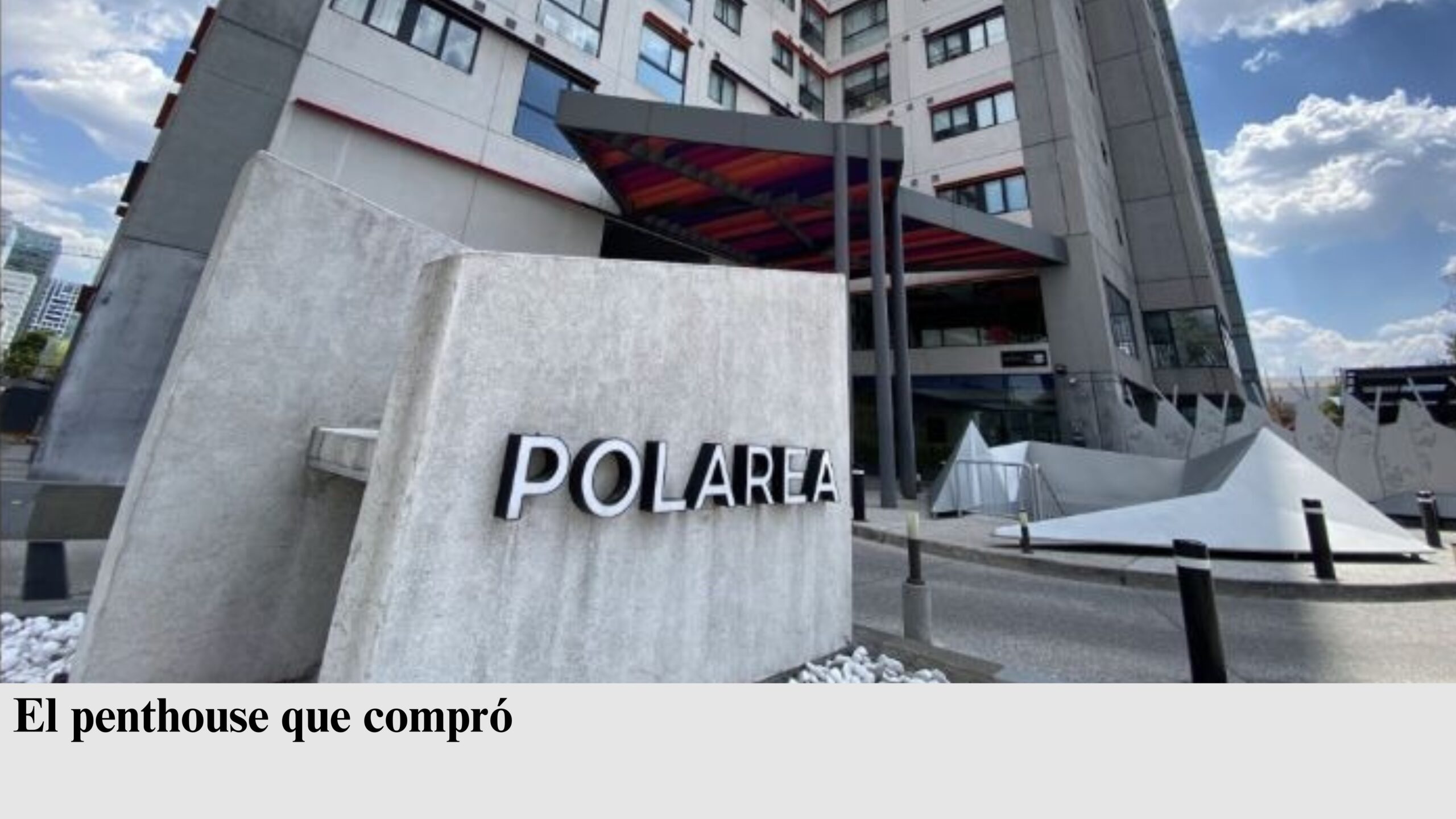 El penthouse de 240 metros cuadrados que adquirió en Polanco cuenta con “roof garden” propio de 74 metros cuadrados, planta baja de 85 metros cuadrados, planta alta conformada por 63 metros cuadrados y terraza de 17 metros cuadrados.