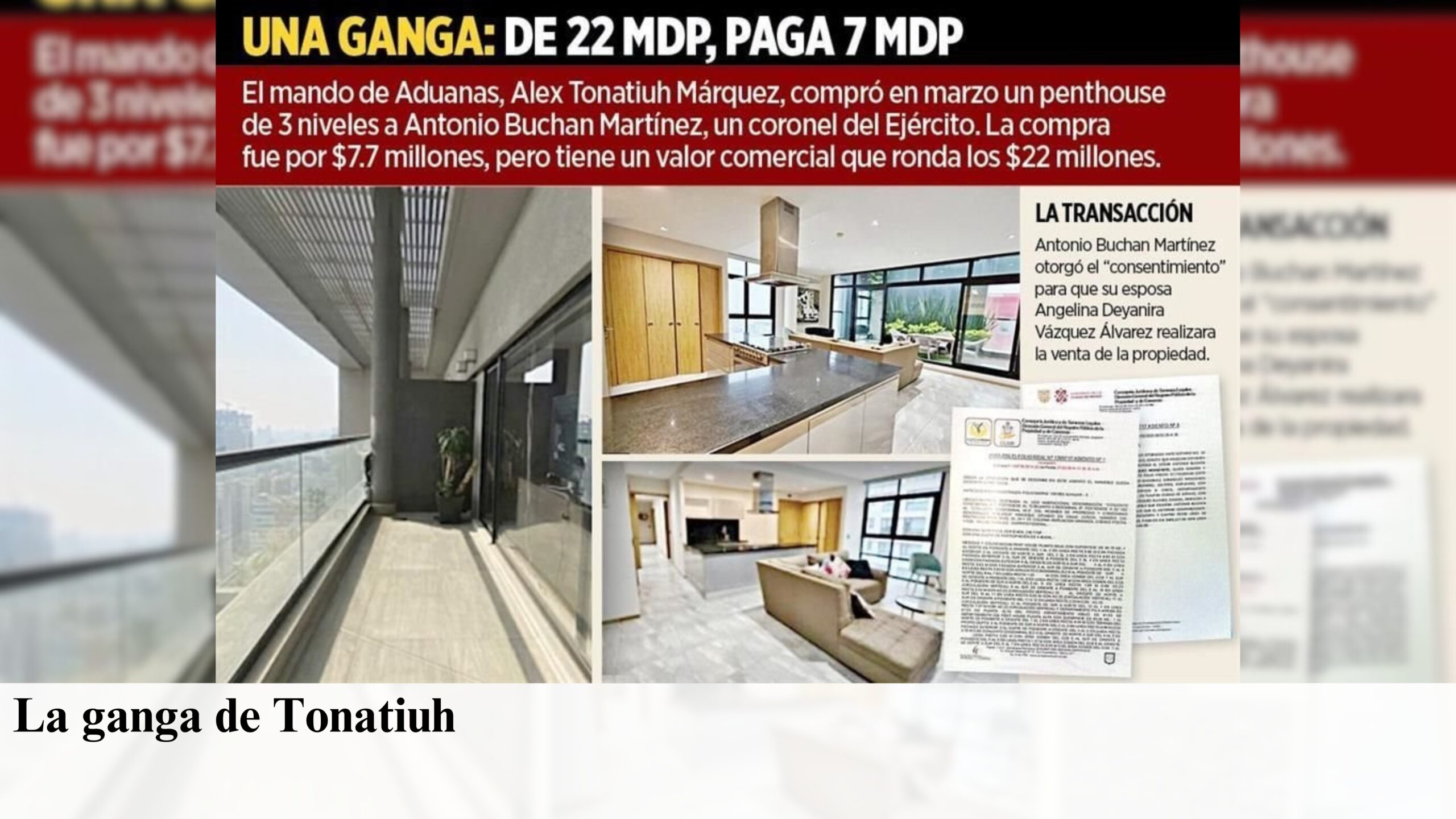 Coronel que vendió el departamento fue directivo de Banjercito, según el folio del inmueble, la propiedad –que no aparece en la declaración patrimonial de Tonatiuh, fue adquirida en junio del 2014 en 5.6 millones de pesos por Angelina Deyanira Vázquez Álvarez, identificada en los documentos como esposa del Coronel Antonio Buchan Martínez.