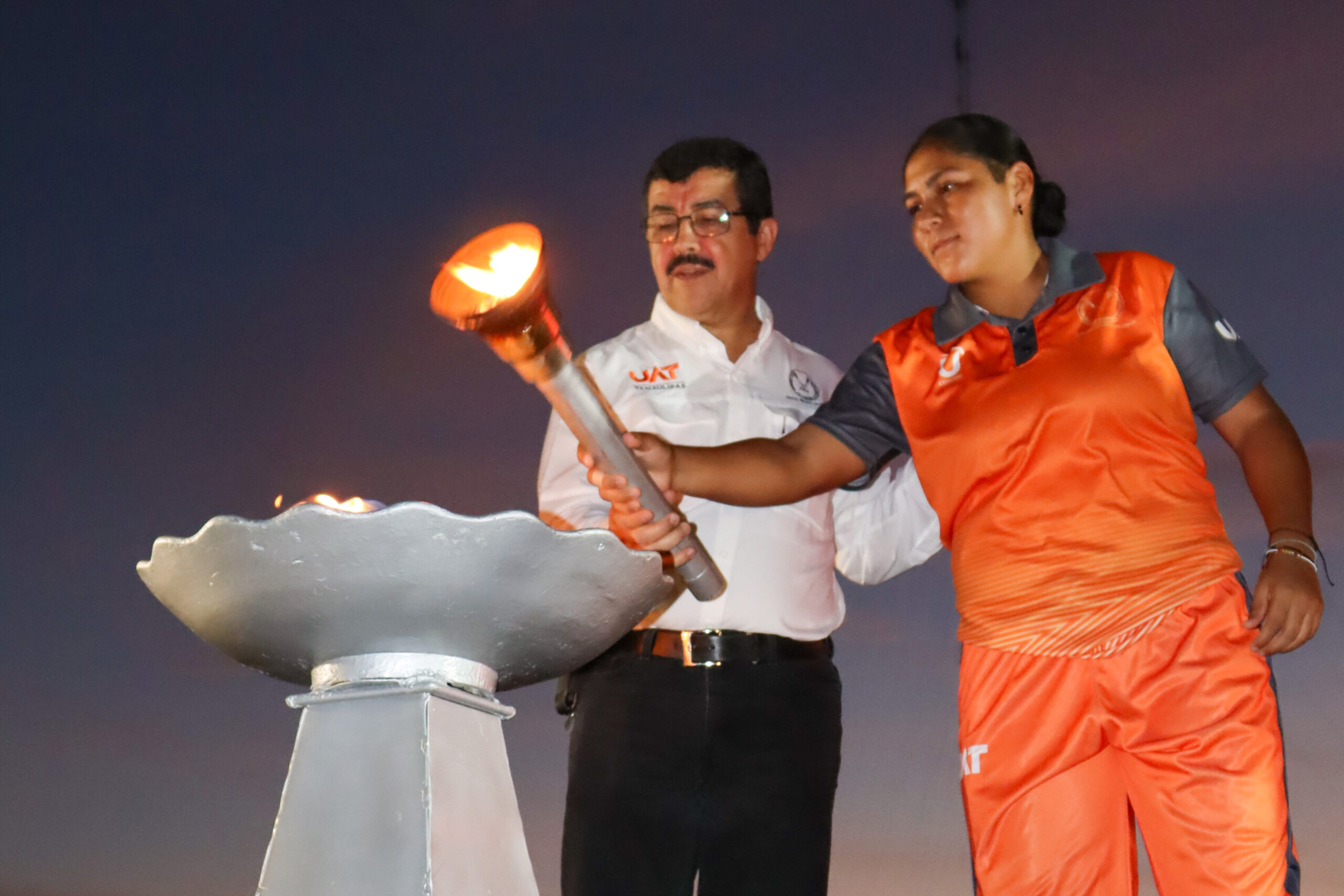 En la ceremonia de apertura, que tuvo como escenario el estadio olímpico del Centro Universitario Sur, el rector Dámaso Anaya, junto a la estudiante Karina Pérez Pérez, encendió el pebetero que marcó el inicio de la máxima justa deportiva de la UAT en el Campus Tampico.