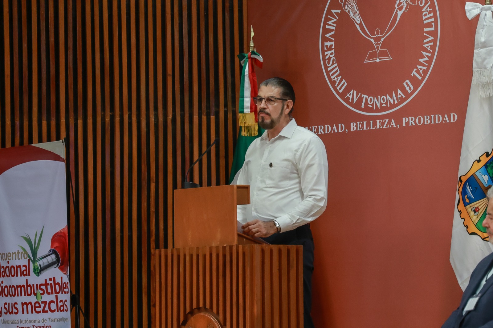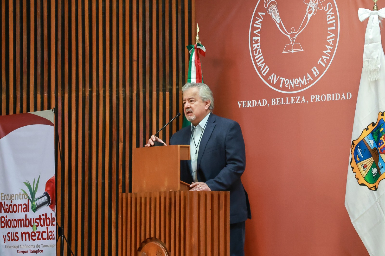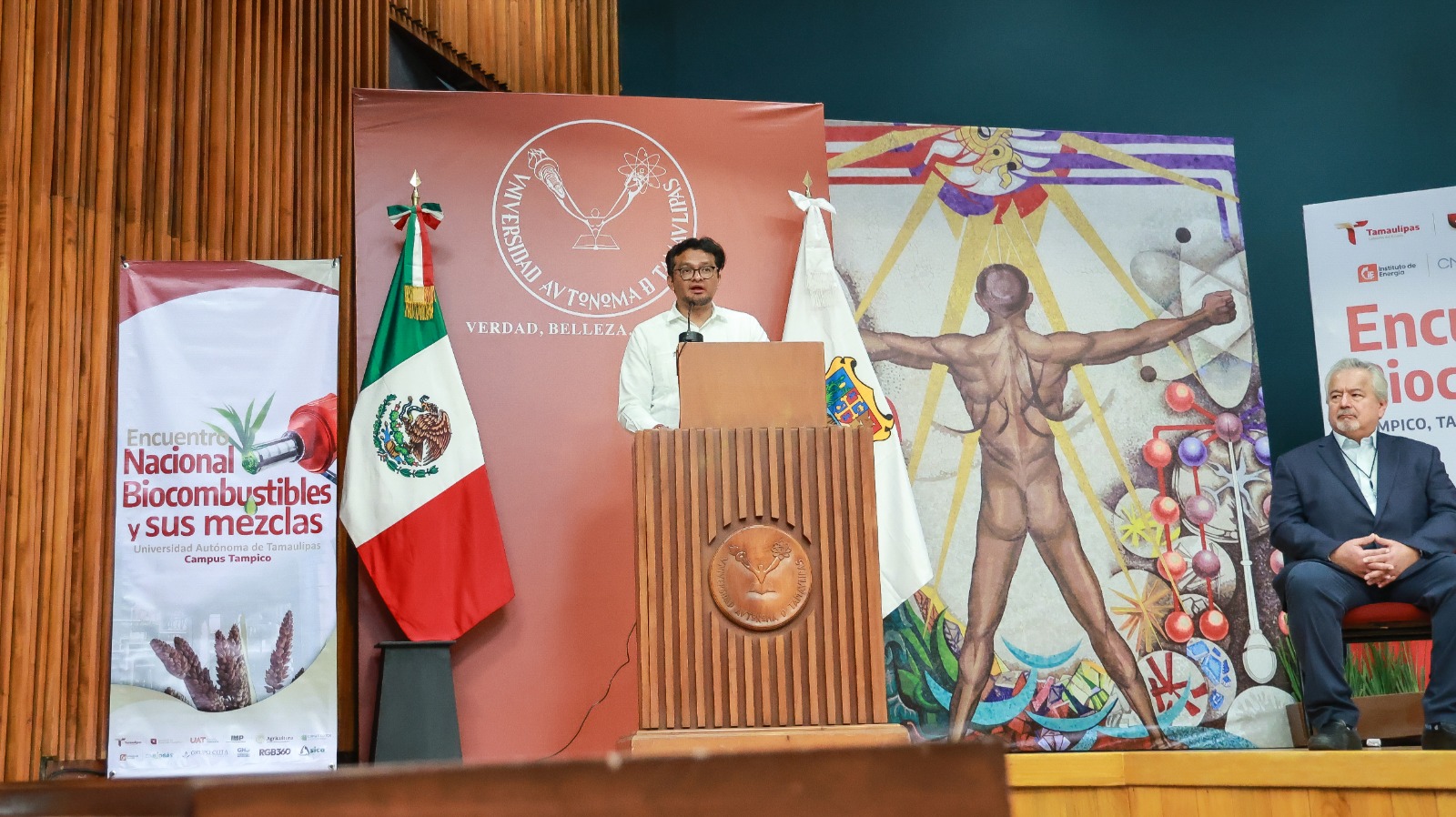 El titular de la Secretaría de Desarrollo Energético de Tamaulipas, Walter Julián Ángel Jiménez, junto con el director general técnico de la UAT, Roberto Campos Leal, inauguraron el primer “Encuentro Nacional de Biocombustibles y sus Mezclas” en la Universidad Autónoma de Tamaulipas, campus Tampico.