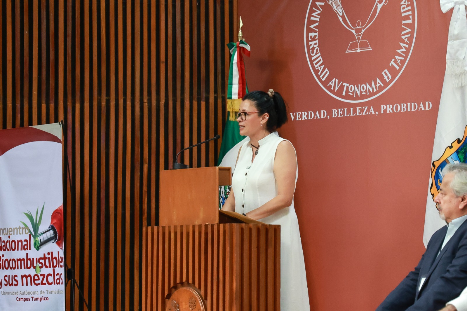 En el presidium estuvieron presentes: el delegado de Tamaulipas en la SEMARNAT, Horacio del Ángel Castillo y el presidente del Consejo Nacional de Biogás, Guillermo Gómez Herrera, entre otras autoridades.