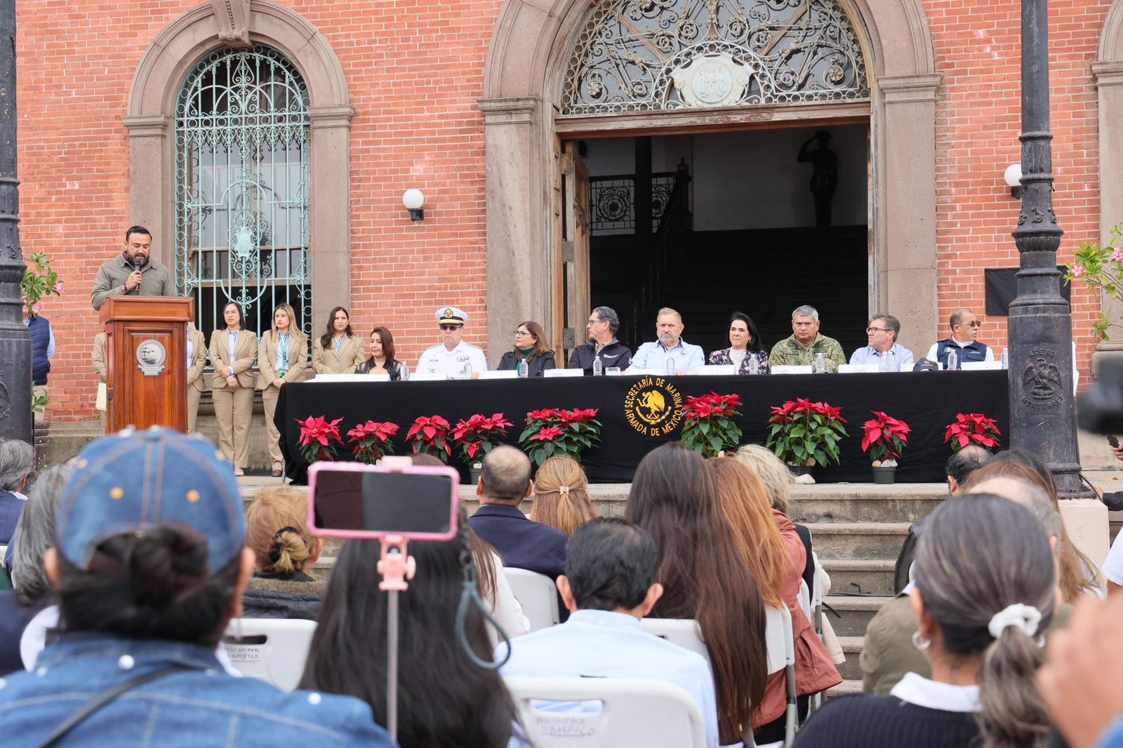 Entre los asistentes estuvieron, la secretaria de Seduma, Karina Saldívar Lartigue; el presidente municipal de Madero, Erasmo González; vicealmirante Miguel Rivas Hernández, comandante de la Primera Zona Naval; Juan Antonio Solbes, de Almacenamiento y Logística Portuaria de Altamira y representante de los Pineros en el Proyecto Turístico de Tampico; vicealmirante Ricardo Rafael Carrión Navarro, director del Astillero de Marina número dos en Tampico; Antonio Morales Hernández, titular de la Aduana Tampico; Tonantzin Silva Cárdenas, directora del Instituto Nacional de Antropología e Historia en Tamaulipas, así como autoridades civiles, navales, académicas, empresariales y público en general.