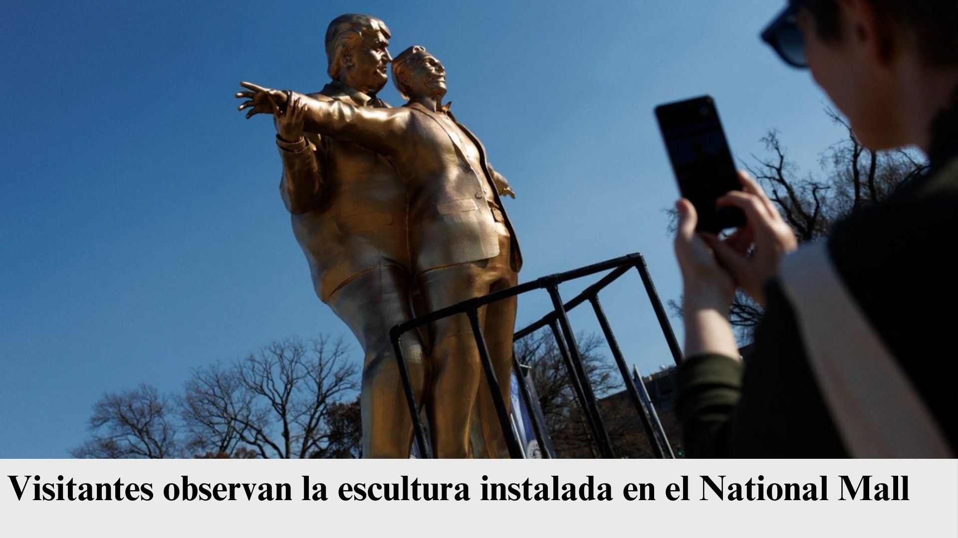 Una escultura con la figura del presidente Donald Trump junto al financiero Jeffrey Epstein apareció como parte de una protesta política en Washington, la obra titulada “King of the World” recrea la conocida escena en ...