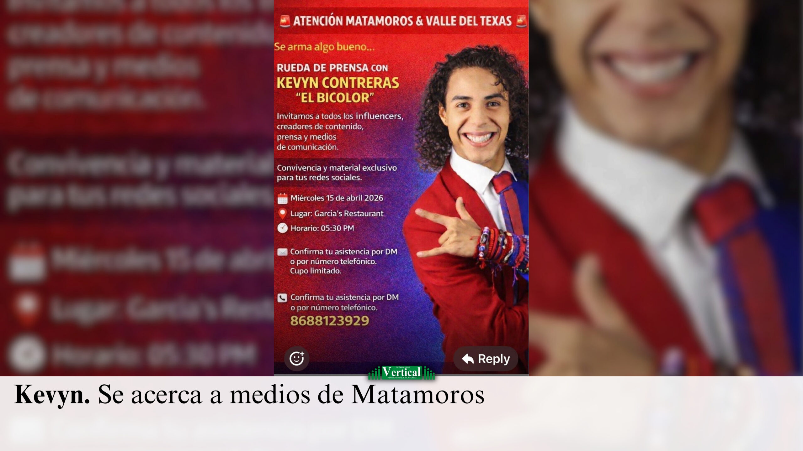 El comediante Kevyn Contreras, mejor conocido como “El Bicolor”, tendrá presencia en Matamoros como parte de una rueda de prensa dirigida a influencers, creadores de contenido y medios de comunicación del Valle de Texas, en un evento que busca impulsar su proyección en la región fronteriza.