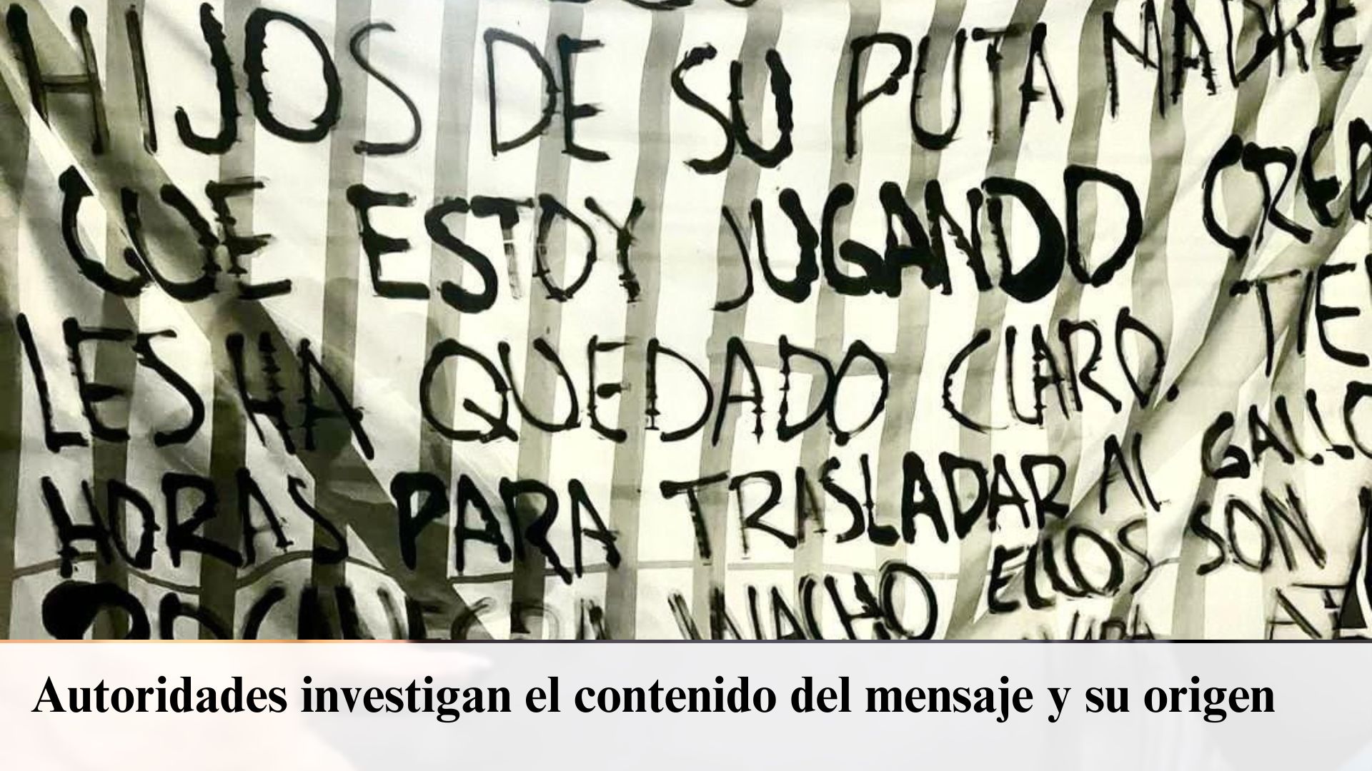 Una manta con mensajes acusatorios fue localizada en la vía pública junto con una pinta en aerosol, lo que generó movilización de elementos de la Secretaría de Seguridad Pública Municipal, el contenido señala a un presunto integrante de un grupo delictivo como responsable de diversos hechos violentos, situación que quedó bajo revisión de las autoridades correspondientes.