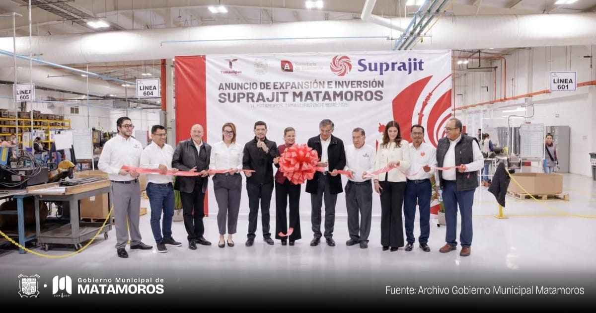 Matamoros continúa fortaleciéndose como destino de inversión industrial con el anuncio de una nueva expansión de la empresa Suprajit México, la cual proyecta la creación de 800 empleos adicionales durante el próximo año. El anuncio se realizó en un evento encabezado por el gobernador de Tamaulipas, Américo Villarreal Anaya, junto a la secretaria de Economía, Ninfa Cantú Deándar, y el presidente municipal de Matamoros, Beto Granados.