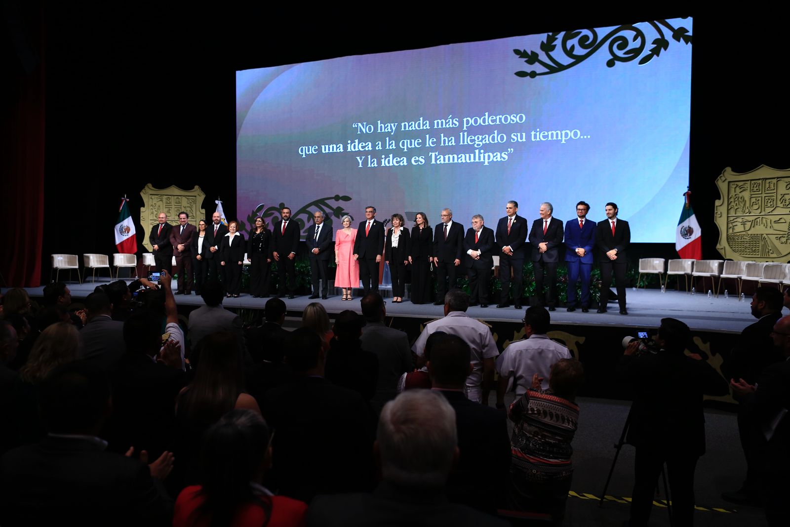 Al hacer un recuento de los compromisos cumplidos, a tres años del inicio de su mandato, acompañado por la presidenta del DIF estatal, doctora María de Villarreal, así como de las y los representantes de todos los sectores productivos del estado, legisladores federales y locales, integrantes del gabinete estatal, mandos de las Fuerzas Armadas, alcaldes y alcaldesas, el mandatario tamaulipeco puntualizó que la participación de nuestro gran estado en el concierto nacional se sustenta en la visión de la nueva ideología política del humanismo mexicano.