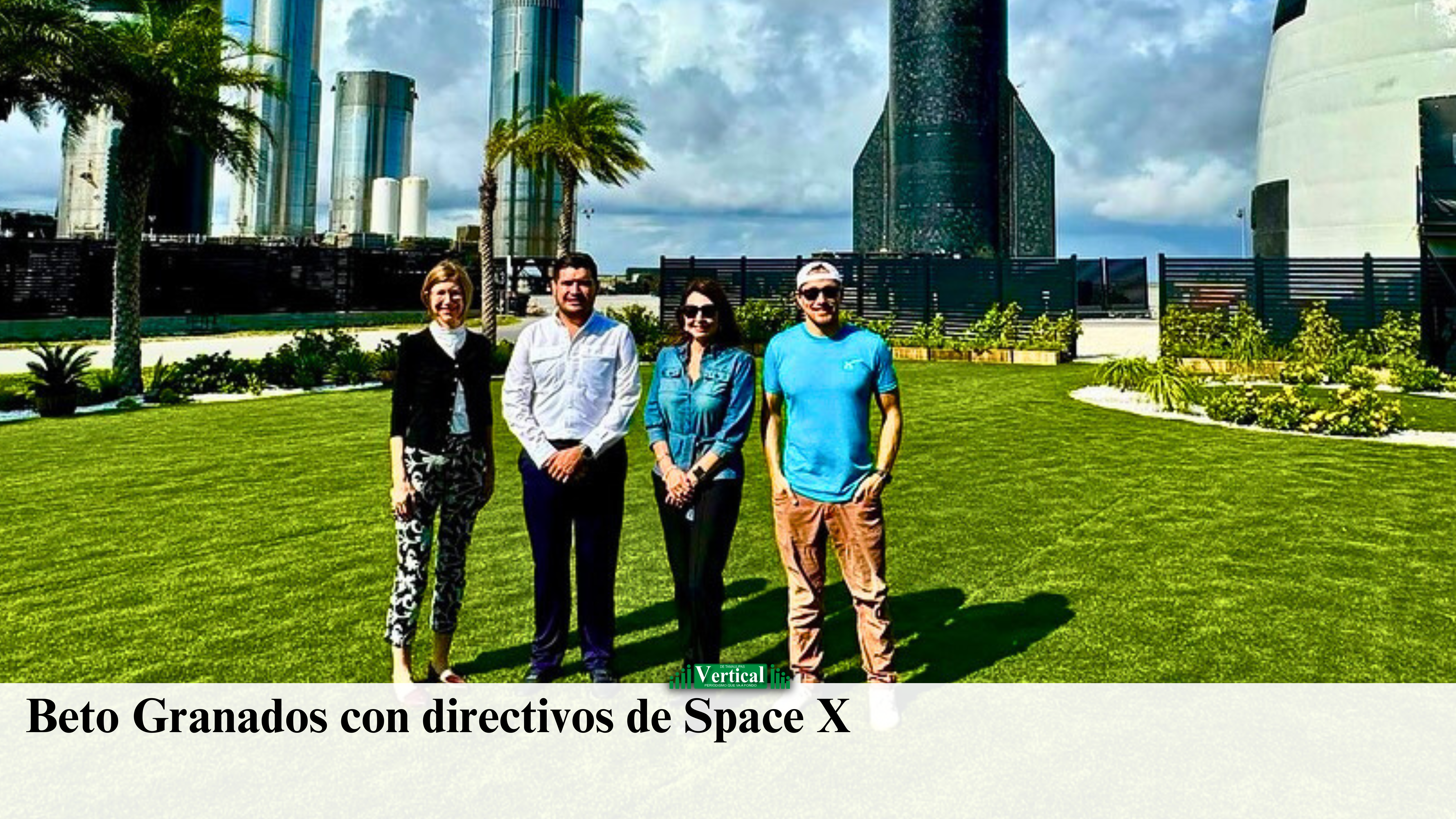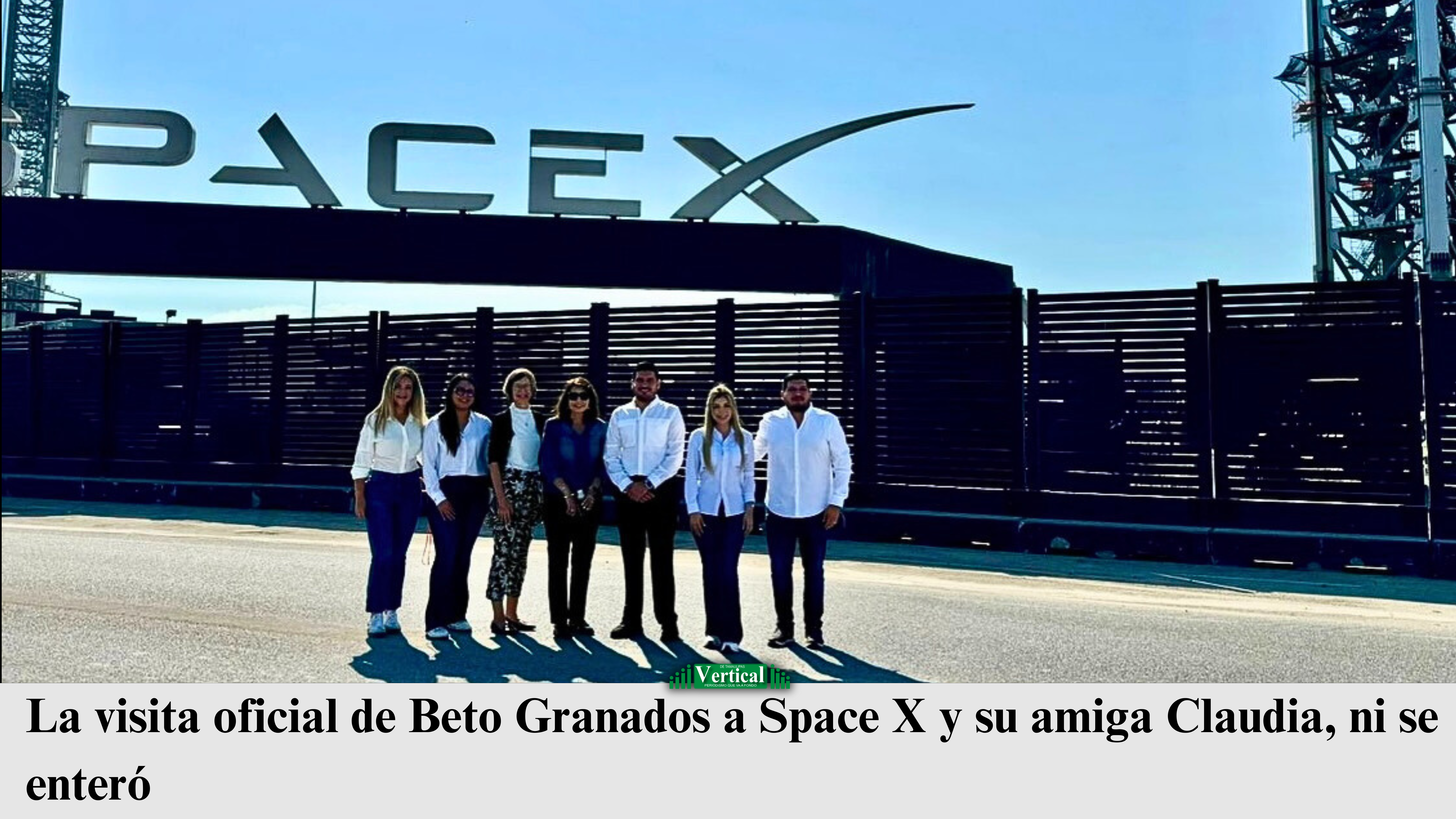Así, El Alcalde Granados su hermano Tony, su esposa Ana Ariceaga y Myri Leal Guajardo, directora de Turismo municipal, participaron en un breve recorrido por Space X (antes que a Beto, le quitaran su Visa Láser).