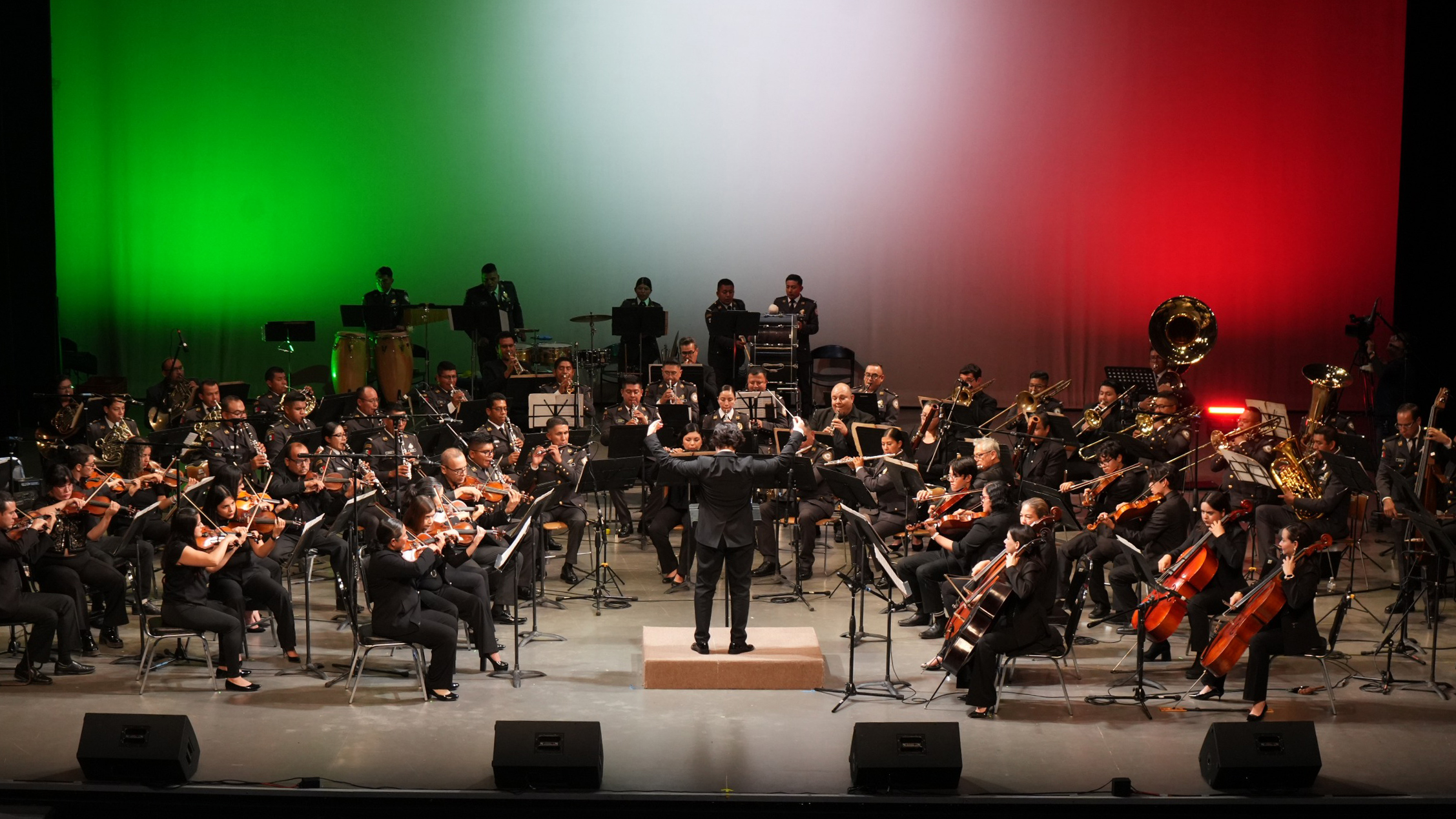 Más adelante, la OSUAT se integró junto a la Orquesta de la Guardia Nacional y la banda de guerra, en una fusión excepcional de coordinación y armonía. Finalmente, la maestra Inés Rodríguez Pedraza asumió la dirección de ambas orquestas para cerrar la velada con el Huapango de José Pablo Moncayo, obra emblemática que refleja la alegría, el ritmo y el orgullo del pueblo mexicano.