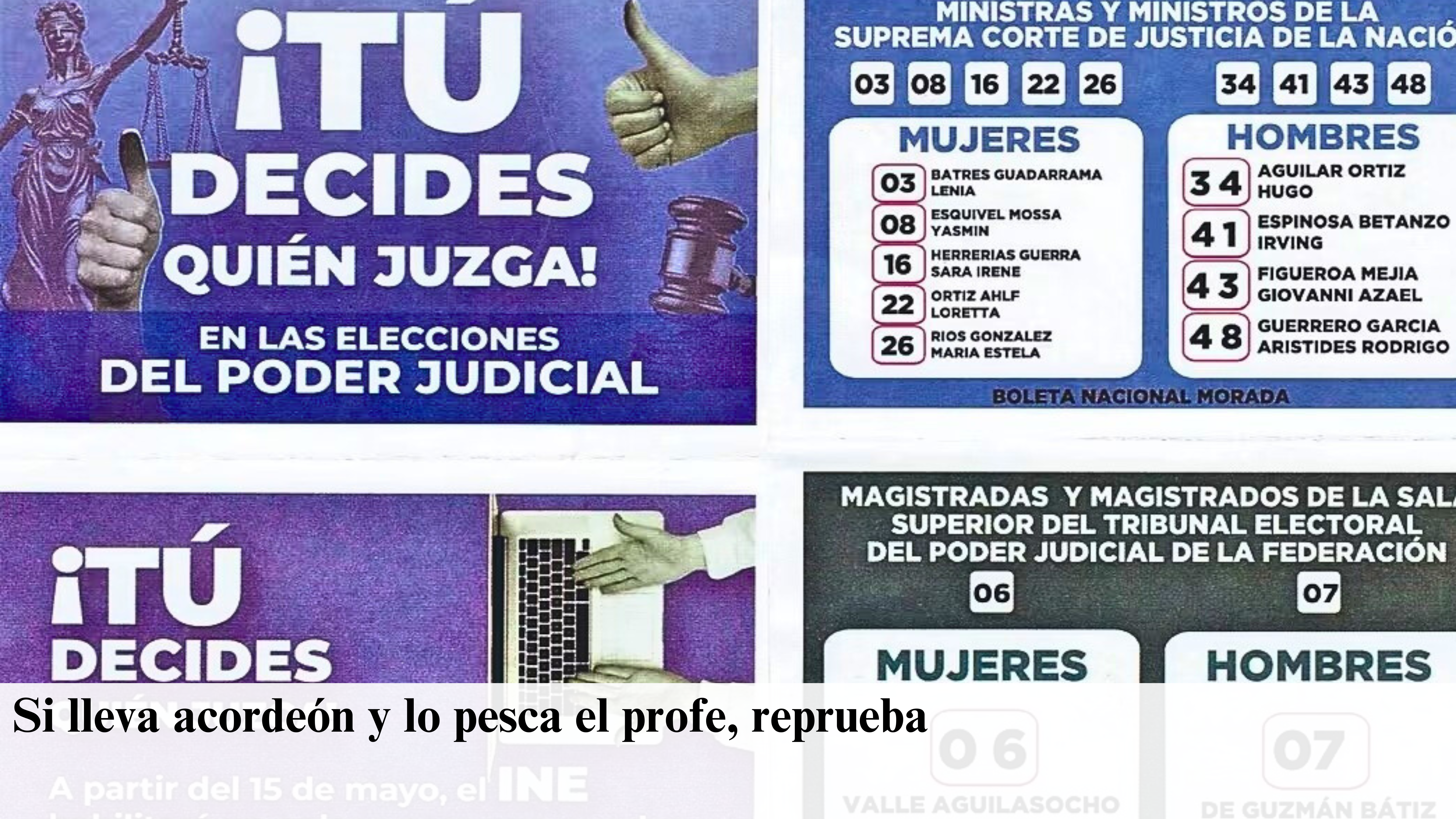 En medio del reparto masivo de acordeones y en redes sociales, que buscan dirigir el voto a favor de algunos candidatos a ministros, magistrados y jueces en nuestro país, la Sala Superior del Tribunal Electoral del Poder Judicial de la Federación (TEPJF), ratificó que están prohibidas.