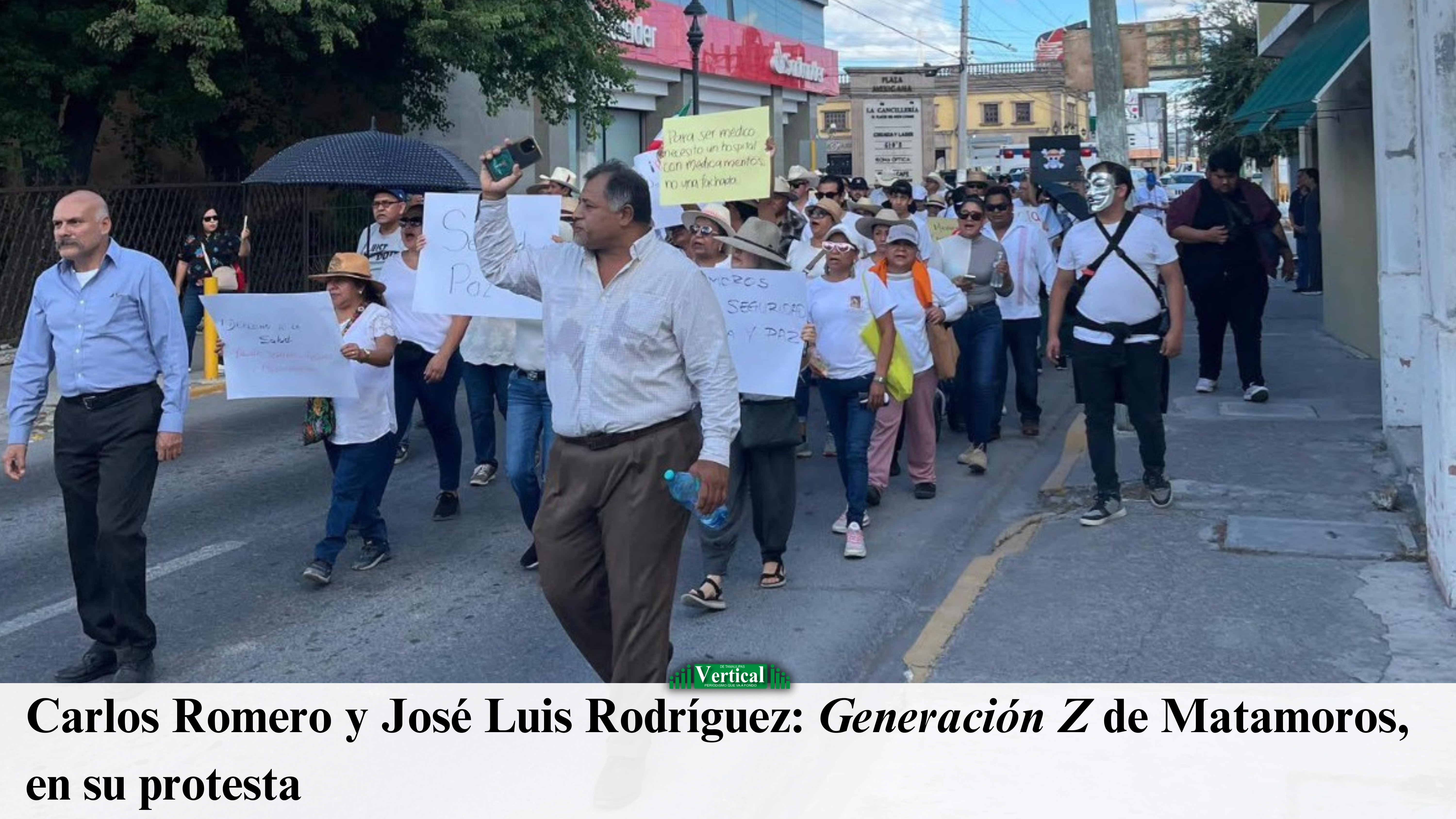 Así, el contingente salió, encabezado por los abogados de Matamoros, Carlos Romero y José Luis Rodríguez, quienes de viva voz lanzaban arengas para exigir paz y seguridad, también pedir un alto a los cobros de piso, que organizaba Protección Civil y Obras Públicas. Pocos saben que acá en Matamoros, las demandas sobre revocación y representación ciudadana en los primeros cuatro puntos exigen: