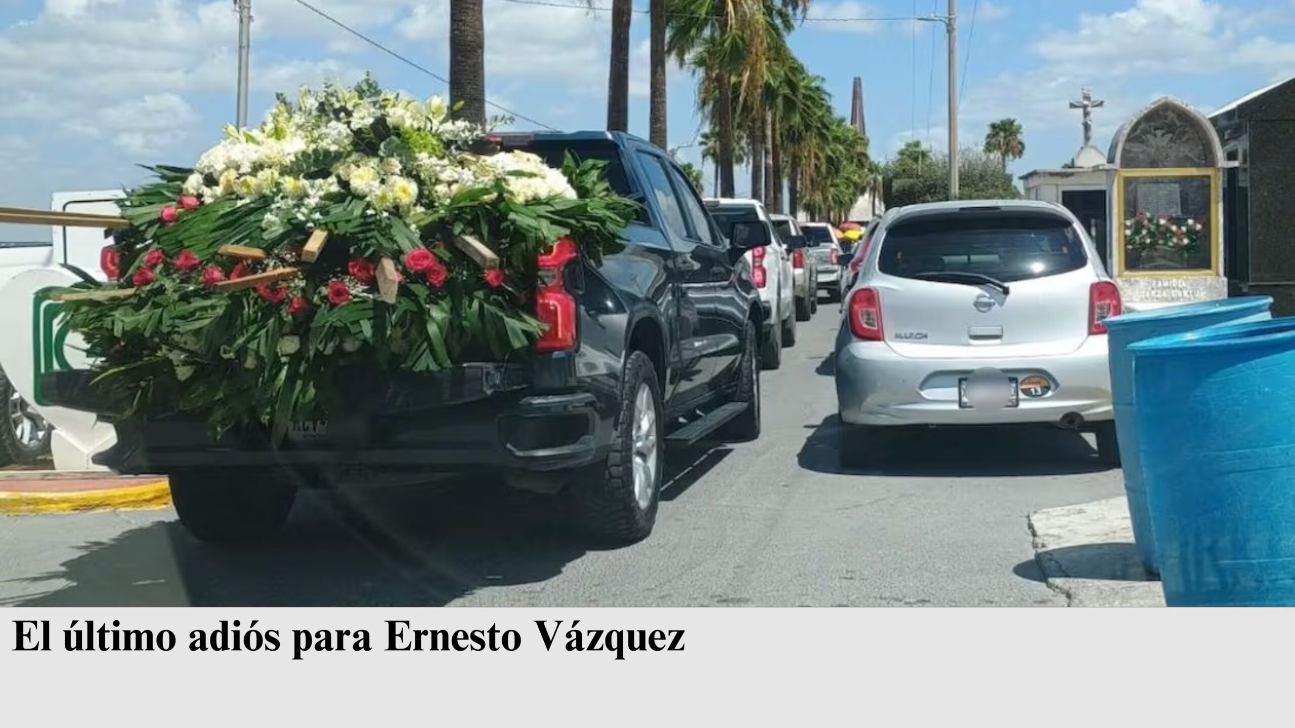 Camionetas que trasladaron las coronas y flores formaron una larga fila tras los familiares, hasta el lugar donde fue sepultado el cuerpo del delegado Ernesto Vázquez.