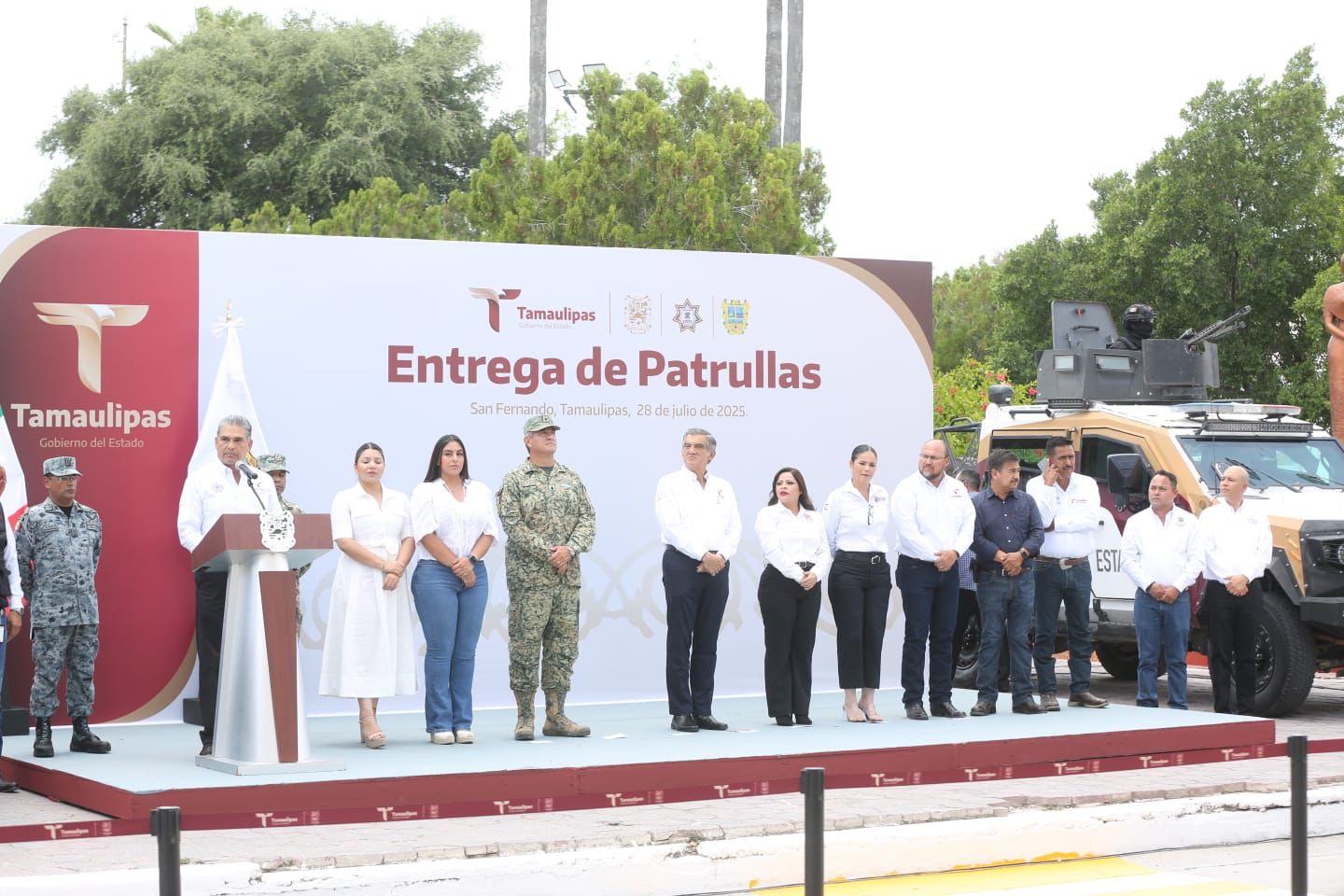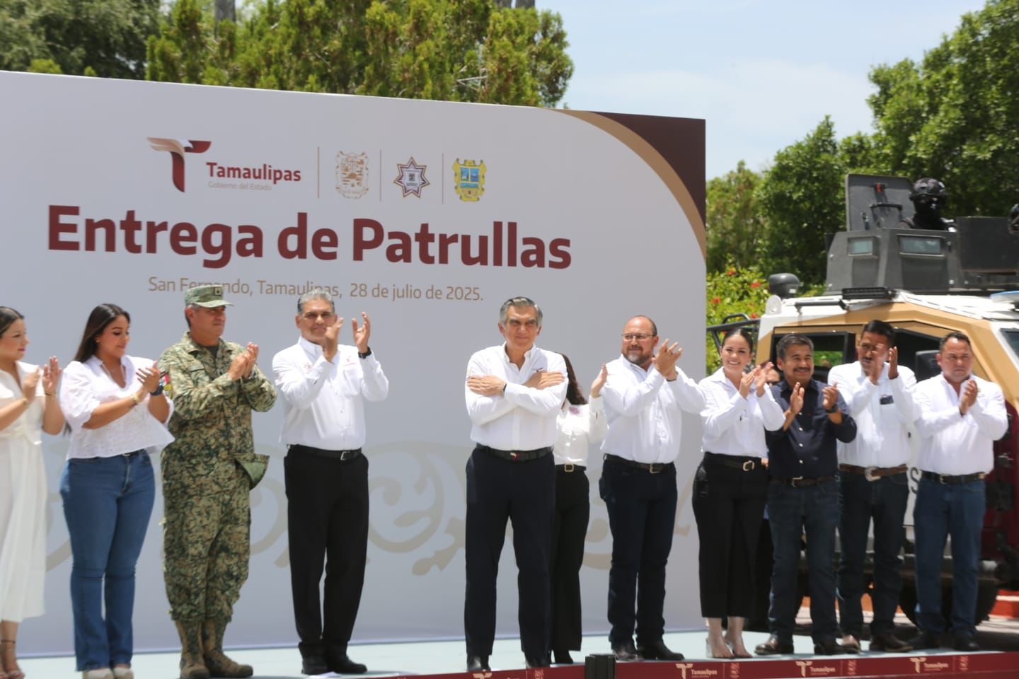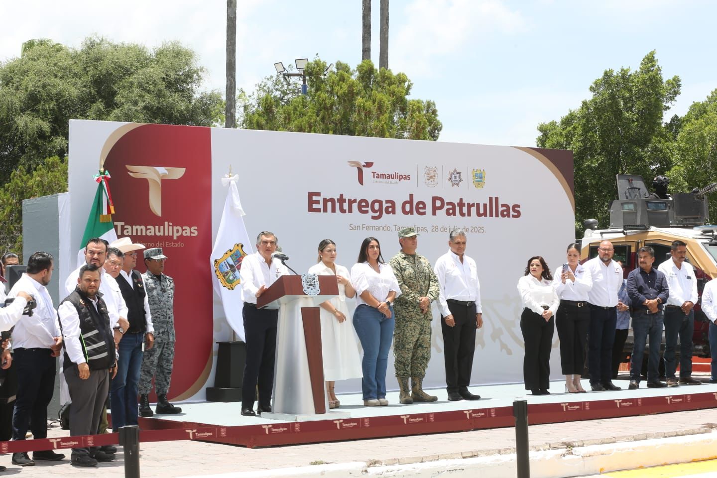 En materia de seguridad pública se trabaja día con día, y esto se refleja en los indicadores que colocan a Tamaulipas entre los diez estados más seguros del país, afirmó el gobernador Américo Villarreal Anaya, al continuar con la entrega de 330 nuevas unidades que se están distribuyendo en todo el estado para reforzar las tareas de patrullaje y vigilancia, en esta ocasión en el municipio de San Fernando y la región.