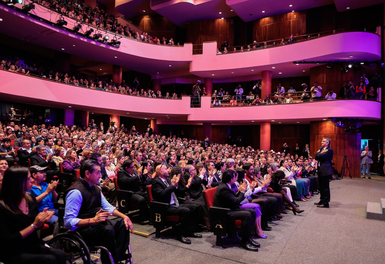 Teniendo como marco el Teatro Amalia González Caballero de Castillo Ledón de esta ciudad, y acompañada de su esposo el doctor Américo Villarreal Anaya, gobernador del estado, la doctora María de Villarreal, presidenta del Sistema DIF Tamaulipas, presentó su primer informe de actividades al frente de esa institución, con el lema “La paz es el camino, y tú eres el reflejo”