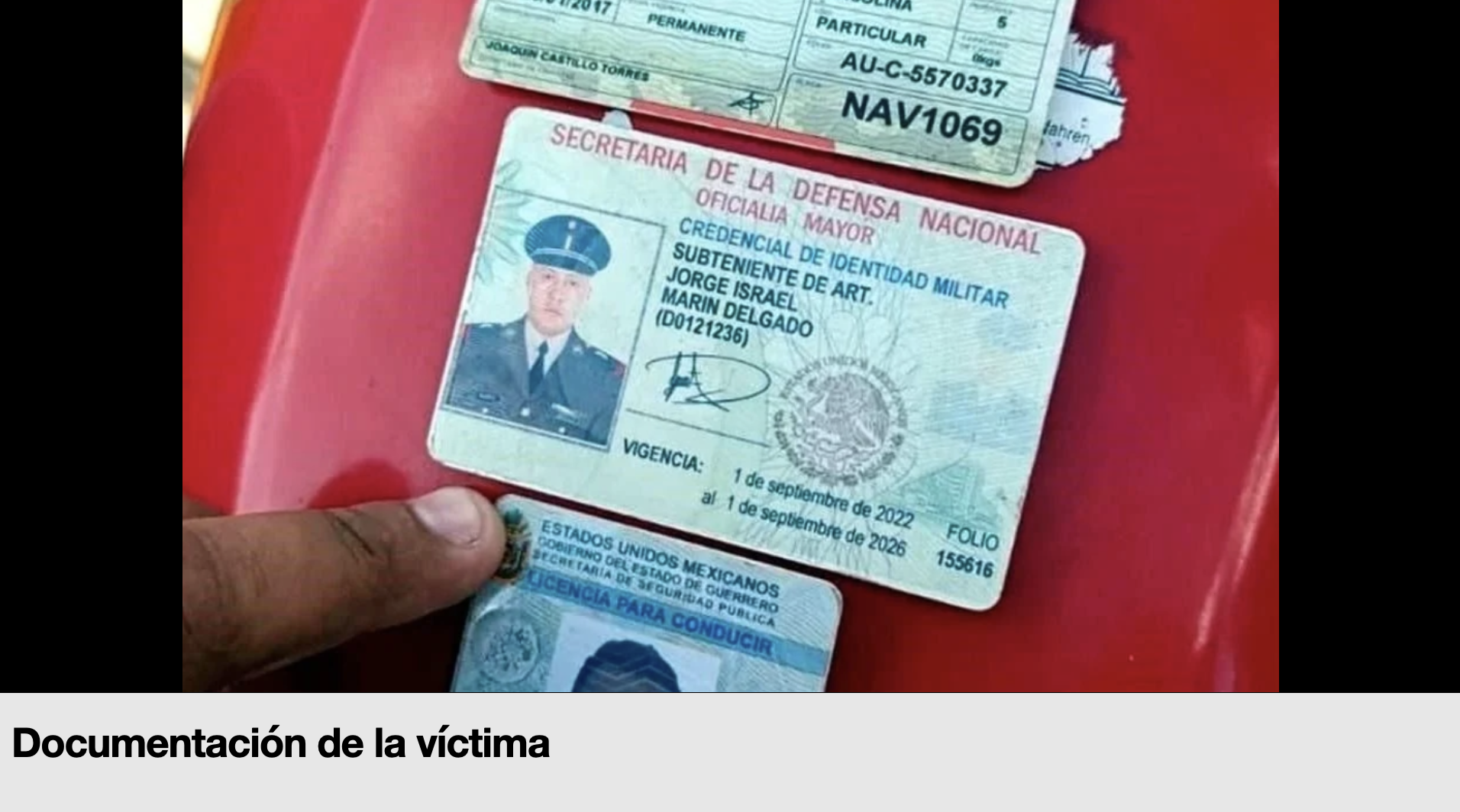En el lugar se encontraron las identificaciones de la víctima que lo acredita como integrante de las fuerzas armadas en la Secretaría de la Defensa Nacional, además de su licencia de conducir expedida en el estado de Guerrero, documentos fotografiados y difundidos a través de redes sociales.