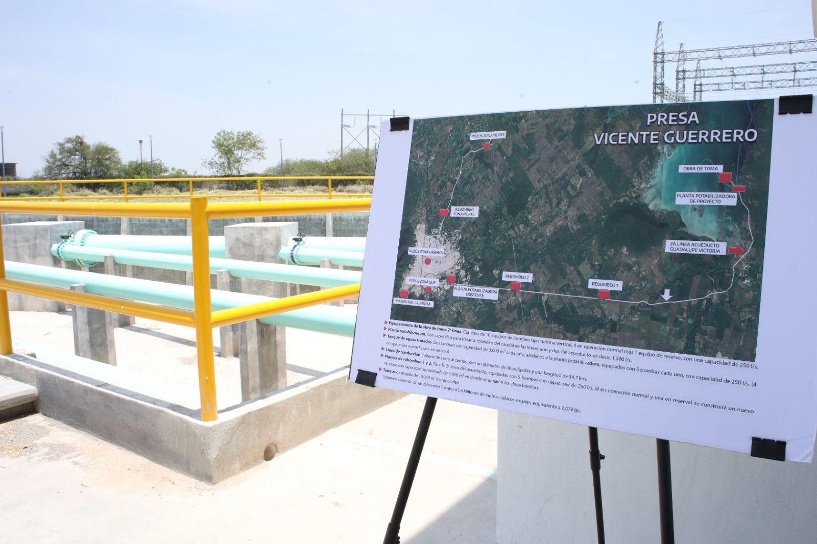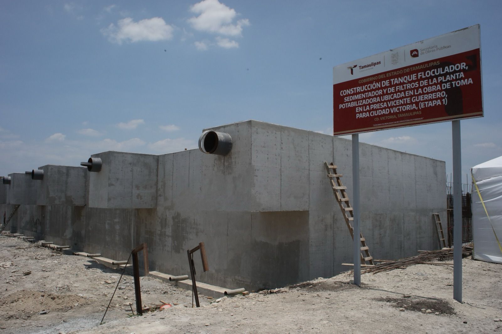 Al terminar el evento, el gobernador Américo Villarreal Anaya y el director general de la Comisión Nacional del Agua, Efraín Morales López, supervisaron el avance de la construcción de la planta potabilizadora para el sistema de agua potable de Ciudad Victoria, cuya inversión en su primera etapa es de 174 millones de pesos.