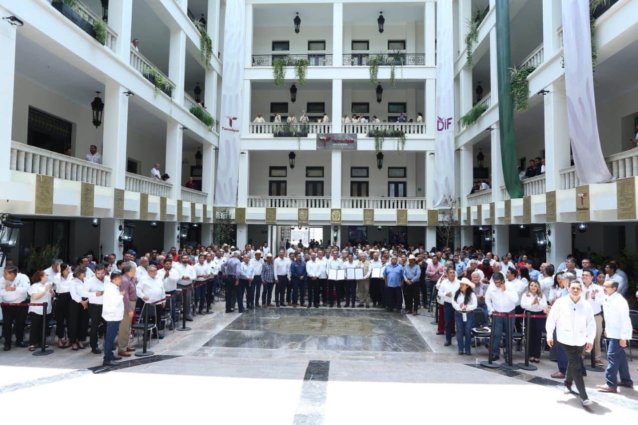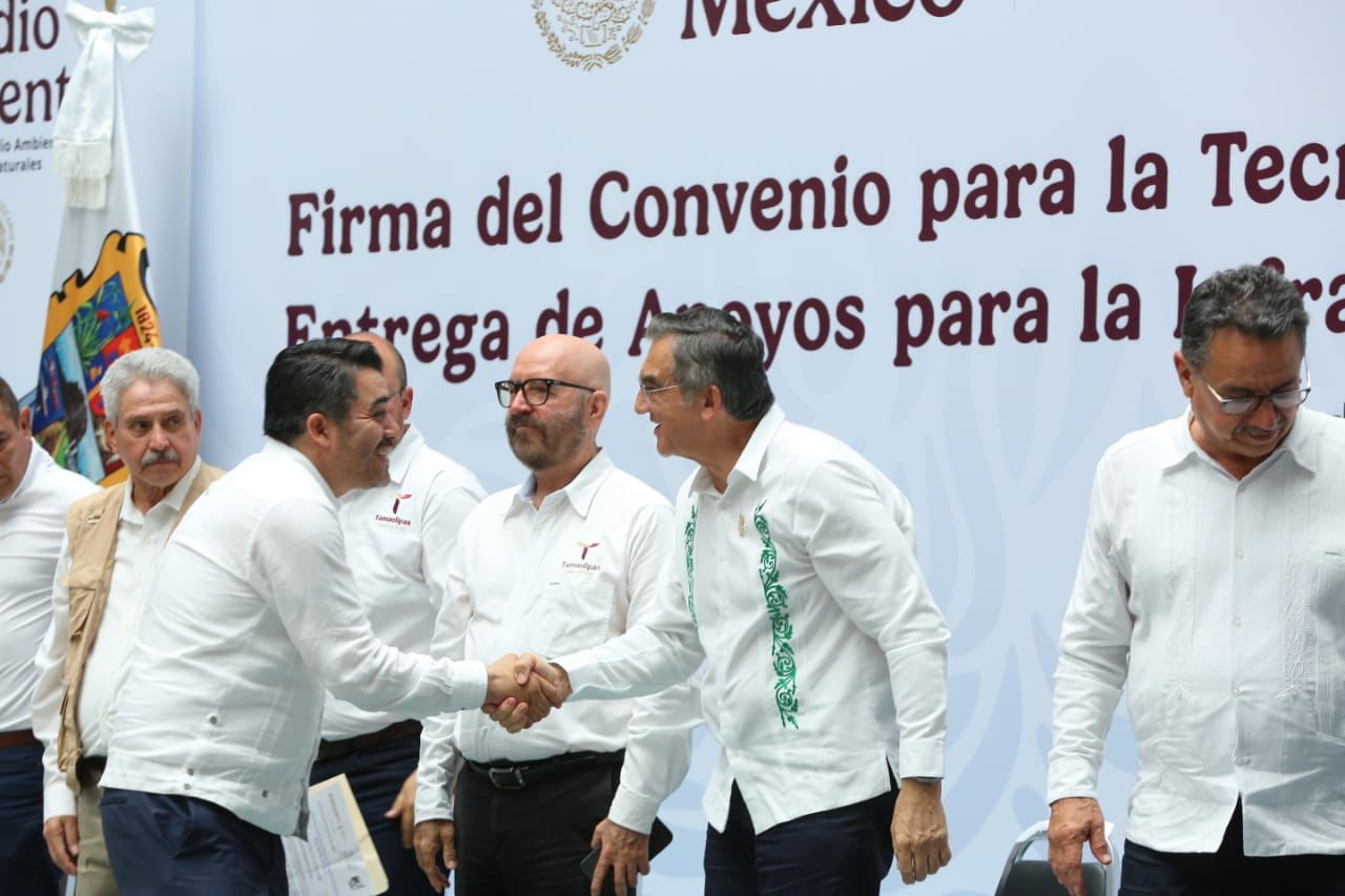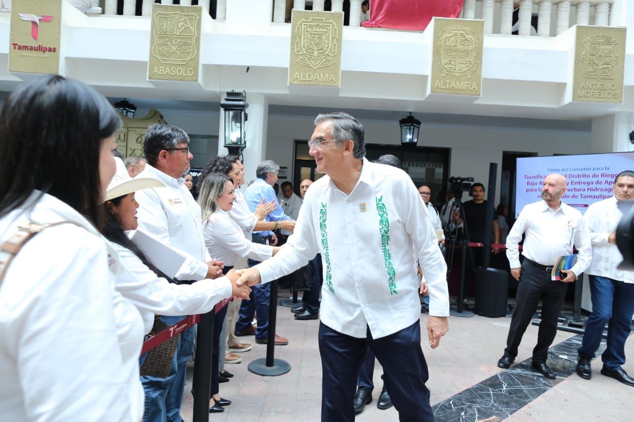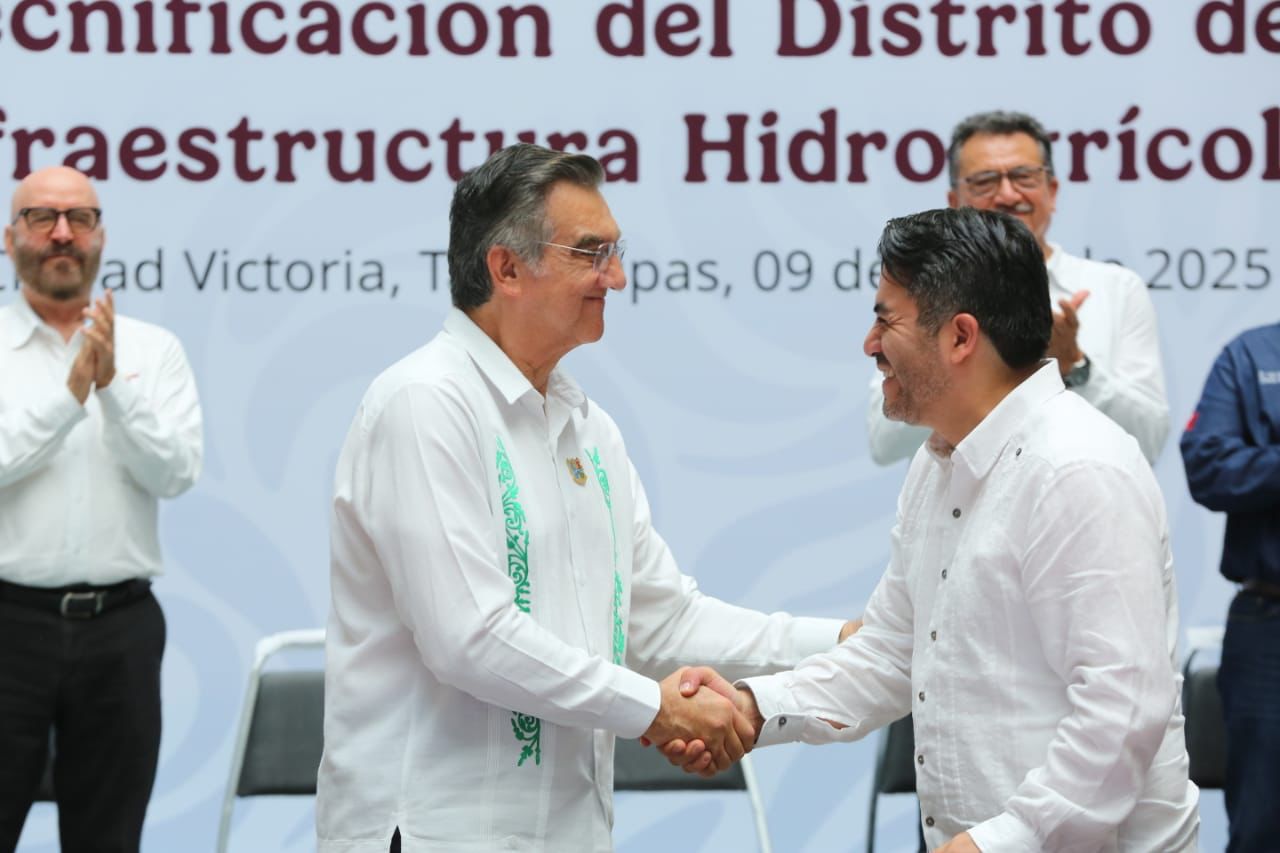 En un hecho histórico y trascendental para la modernización del campo tamaulipeco, y en cumplimiento de uno de los 100 compromisos establecidos por la presidenta de México, Claudia Sheinbaum Pardo, orientado a tecnificar más de 200,000 hectáreas para riego agrícola, este lunes se firmó el Convenio para la Tecnificación del Distrito de Riego 025 Bajo Río Bravo, por el director general de la Comisión Nacional del Agua (Conagua), Efraín Morales López, y el gobernador de Tamaulipas, Américo Villarreal Anaya. Además, se llevó a cabo la Entrega de Apoyos para la Infraestructura Hidroagrícola en el estado con un monto de 388 millones 206 mil pesos.